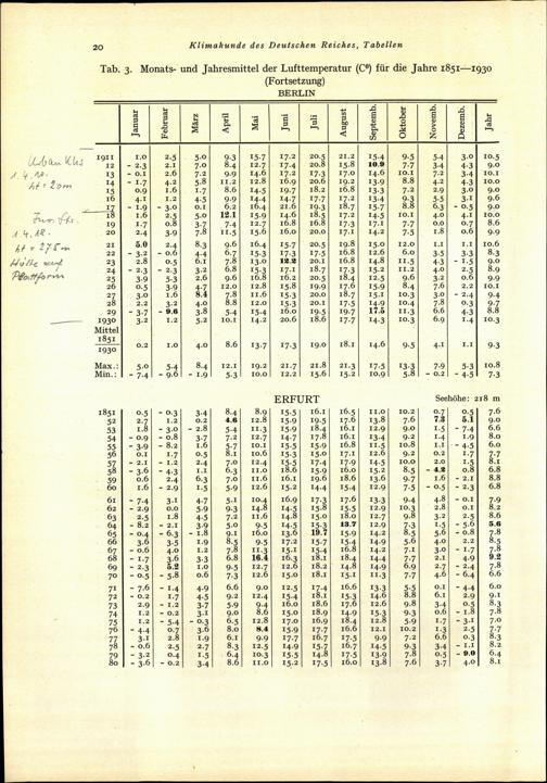 Tab. 3: Monats- und Jahresmittel der Lufttemperatur (C°) 1851-1930 Tilsit