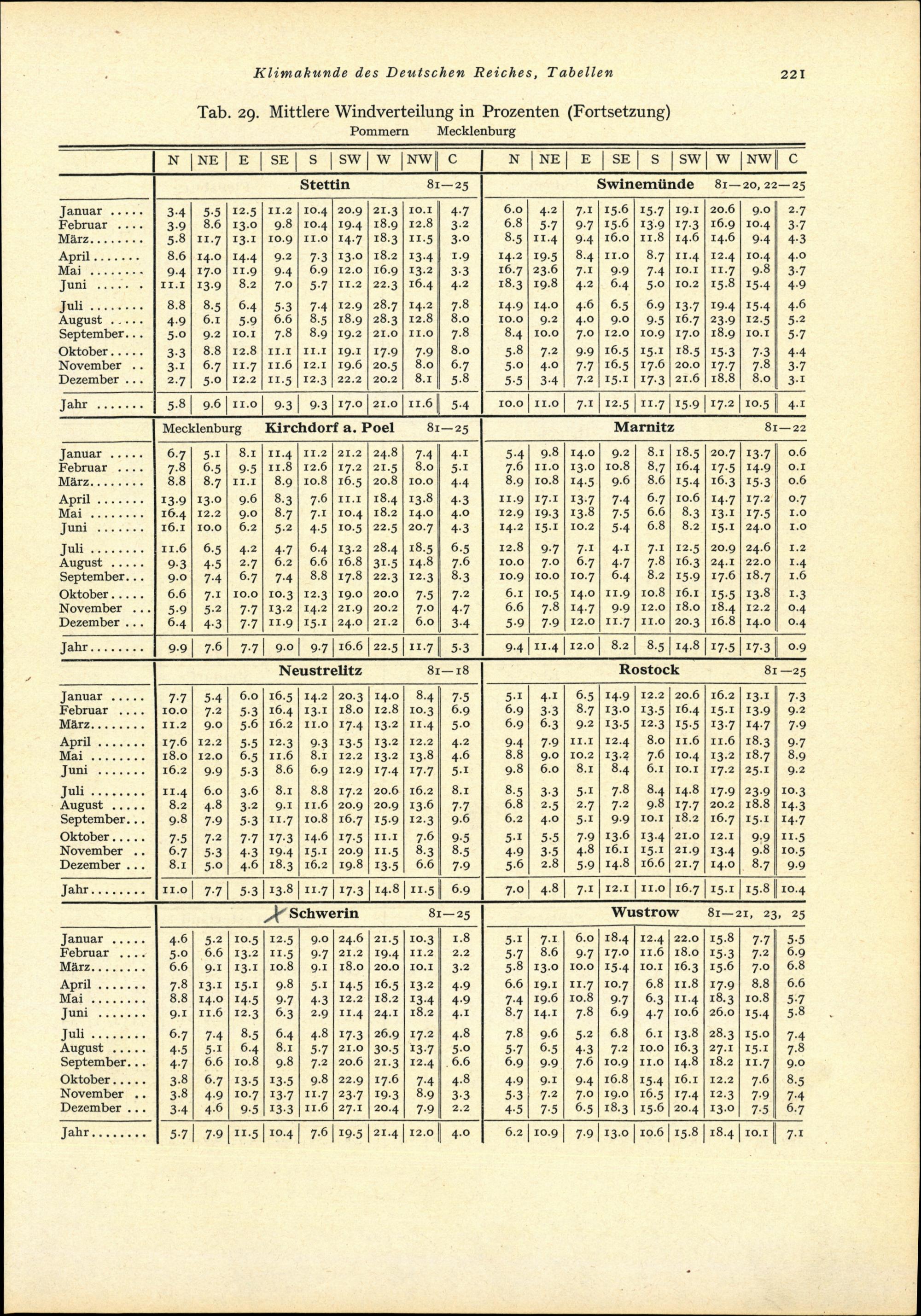 Tab. 29: Mittlere Windverteilung in Prozenten