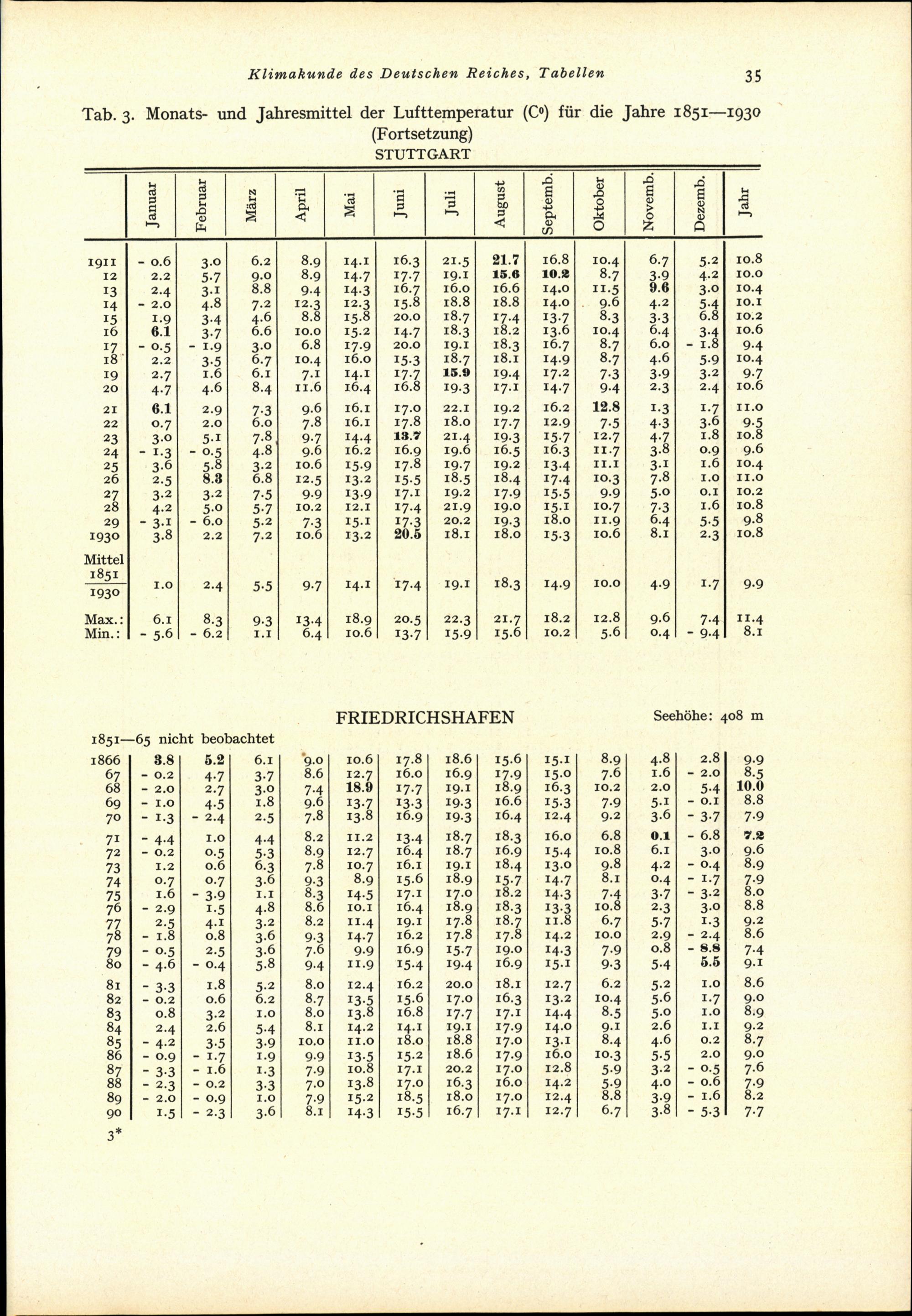 Tab. 3: Monats- und Jahresmittel der Lufttemperatur (C°) 1851-1930 Tilsit
