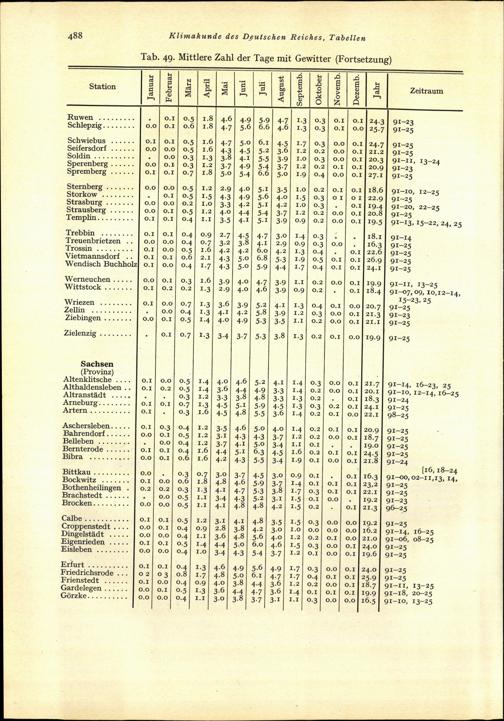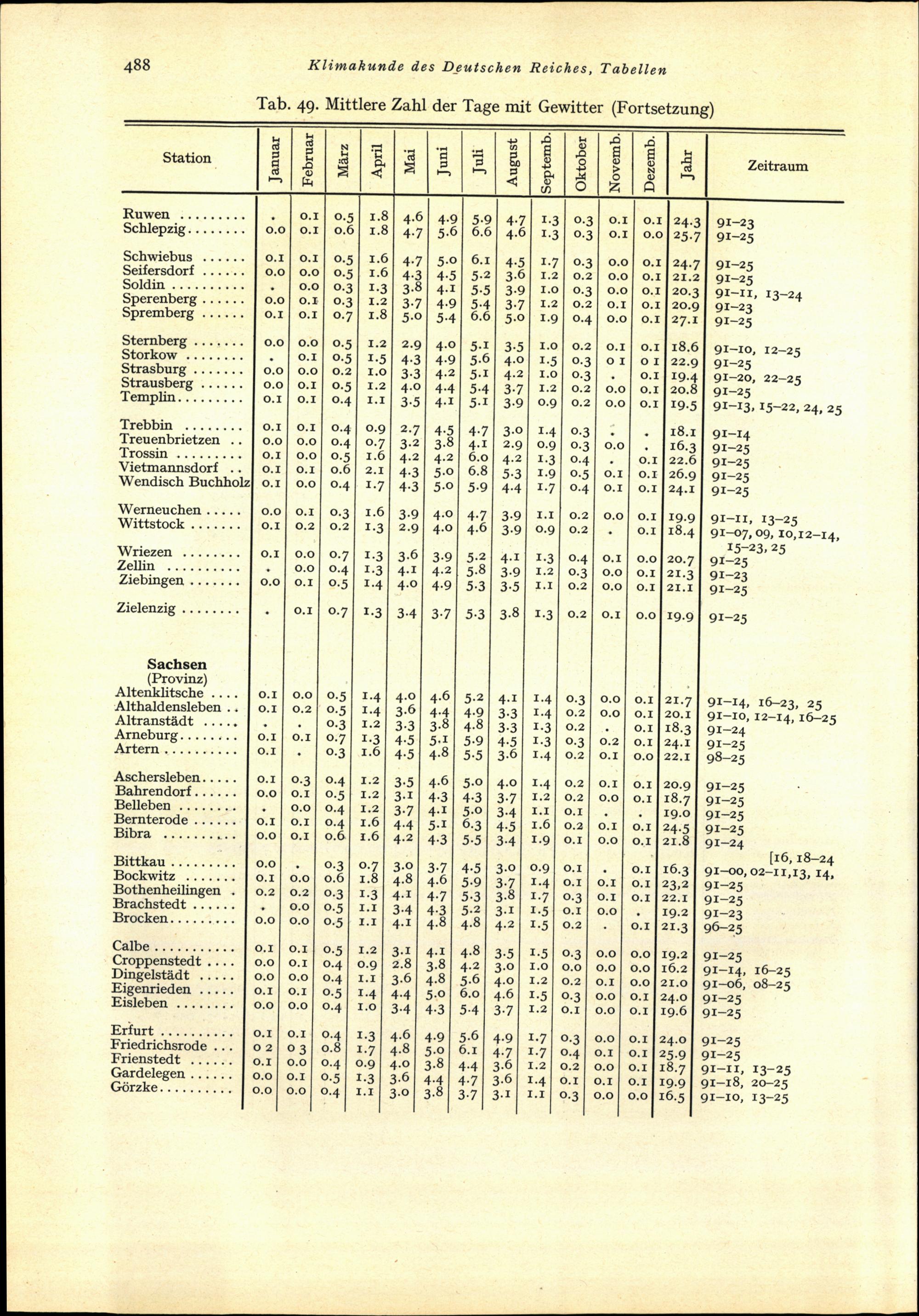 Tab. 49: Mittlere Zahl der Tage mit Gewitter