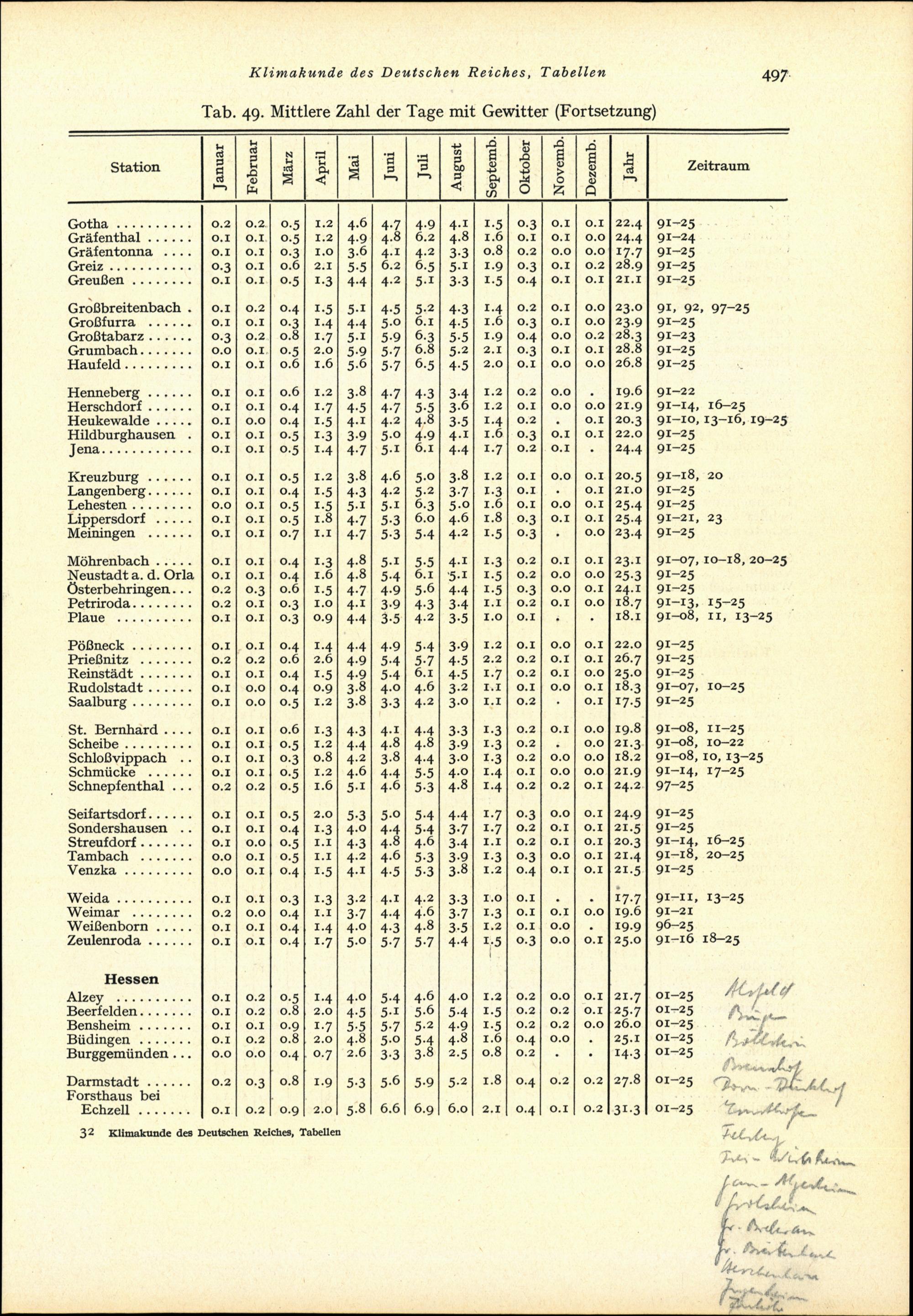 Tab. 49: Mittlere Zahl der Tage mit Gewitter