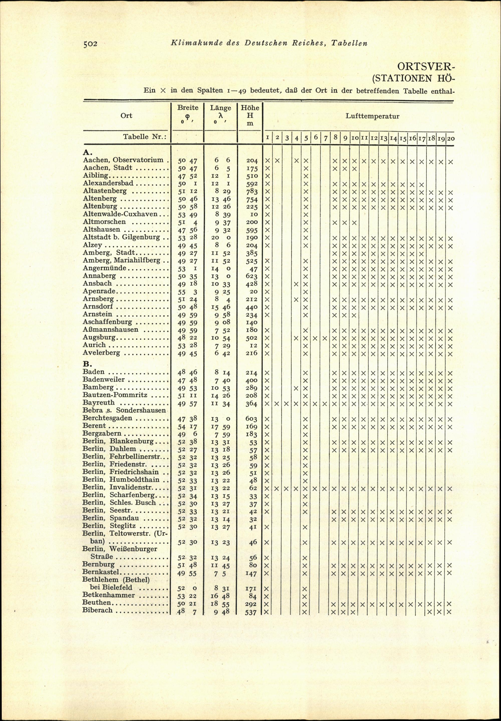 Ortsverzeichnis I: Stationen höherer Ordnung