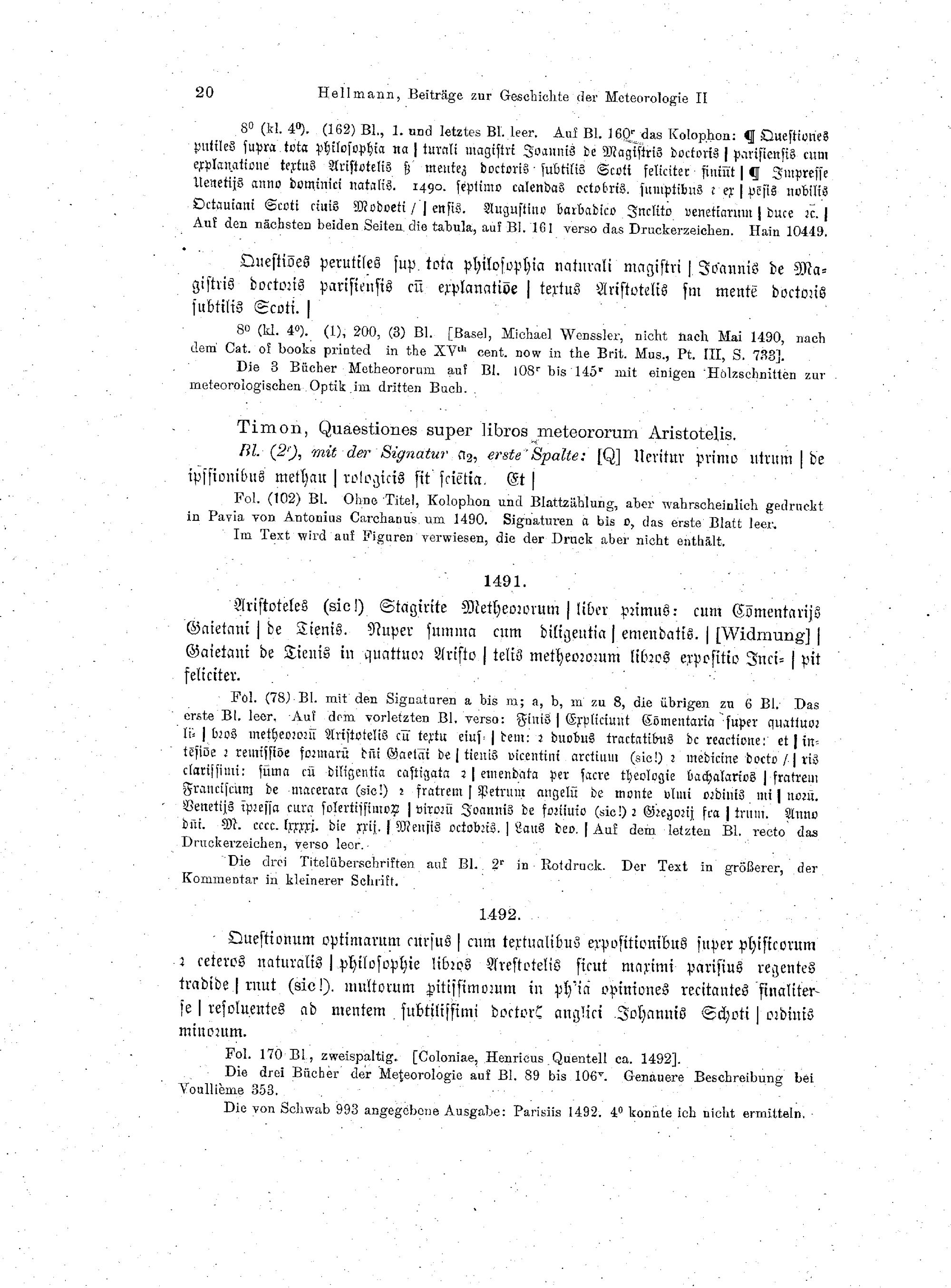 Bibliographie der gedruckten Ausgaben, Übersetzungen und Auslegungen der Meteorologie...