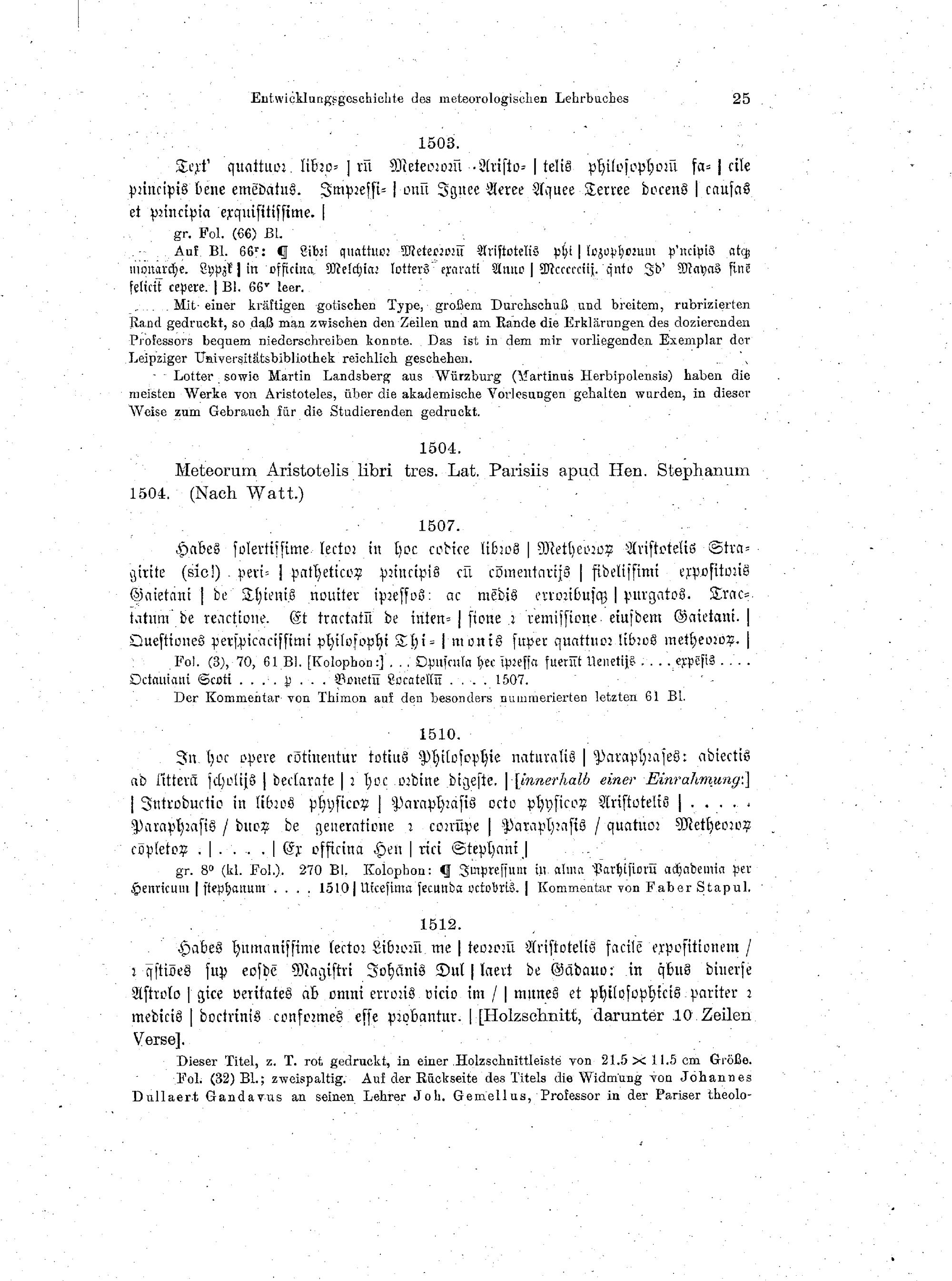 Bibliographie der gedruckten Ausgaben, Übersetzungen und Auslegungen der Meteorologie...