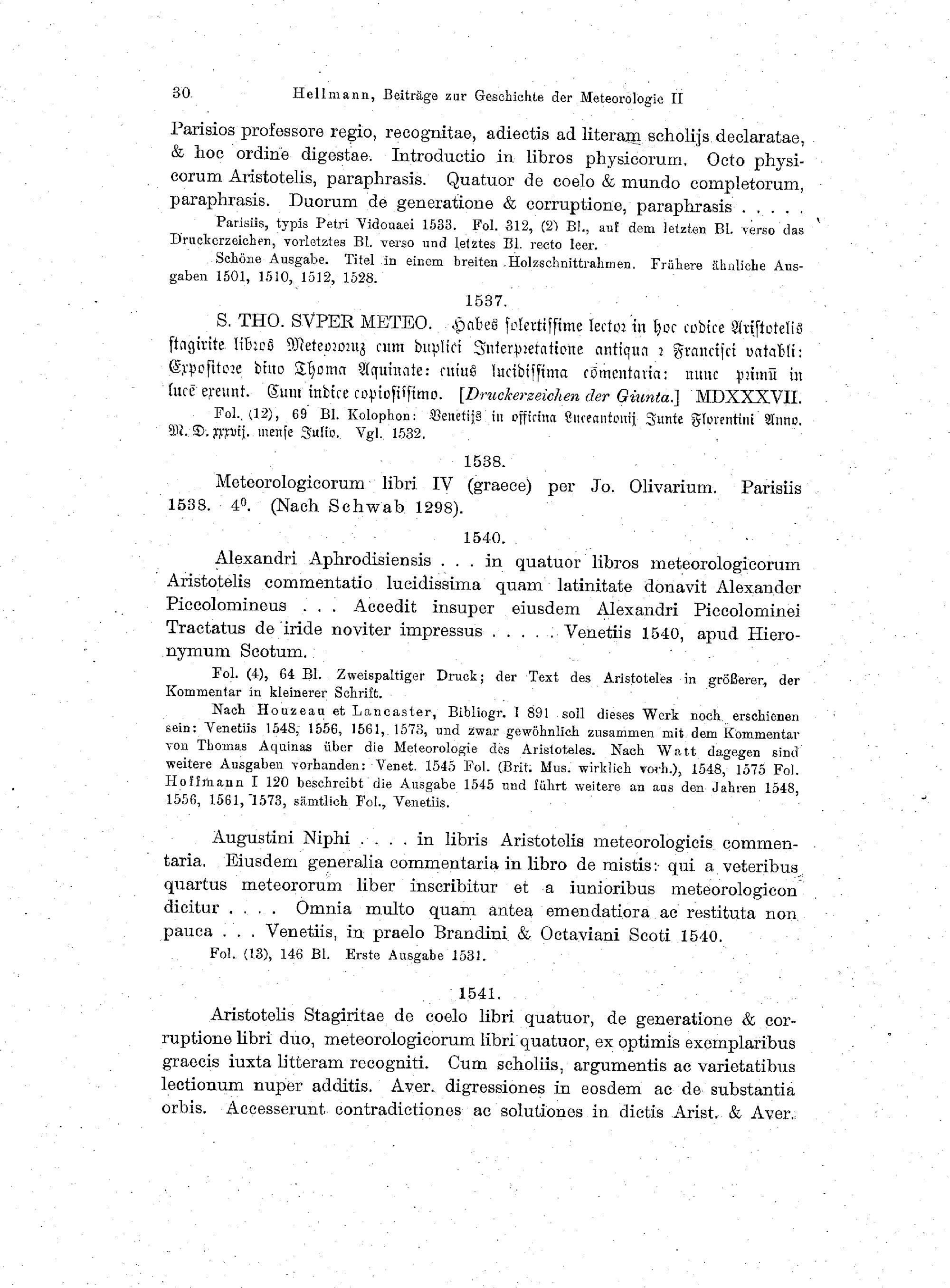 Bibliographie der gedruckten Ausgaben, Übersetzungen und Auslegungen der Meteorologie...