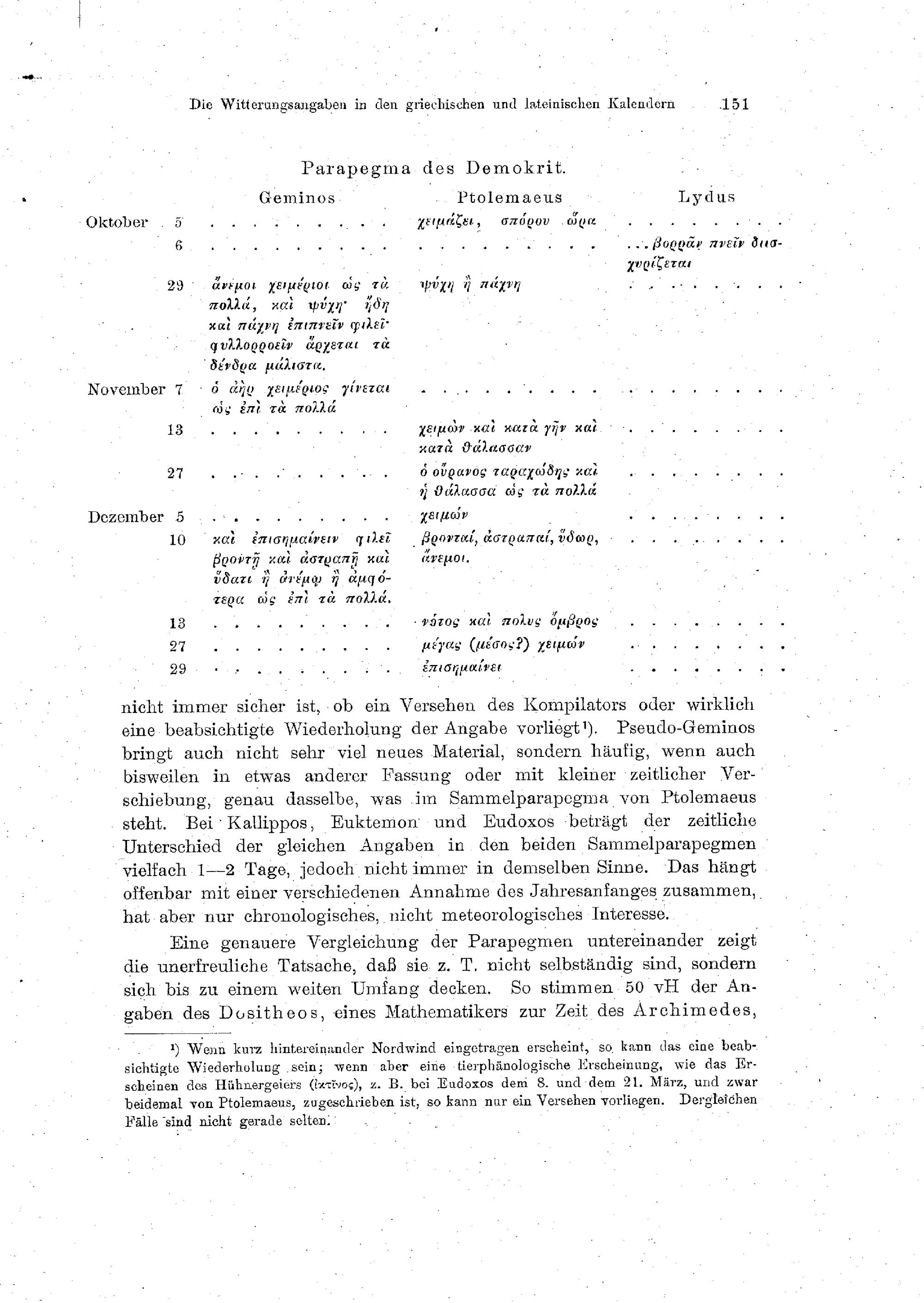 Nr. 7: Die Witterungsangaben in den griechischen und lateinischen Kalendern