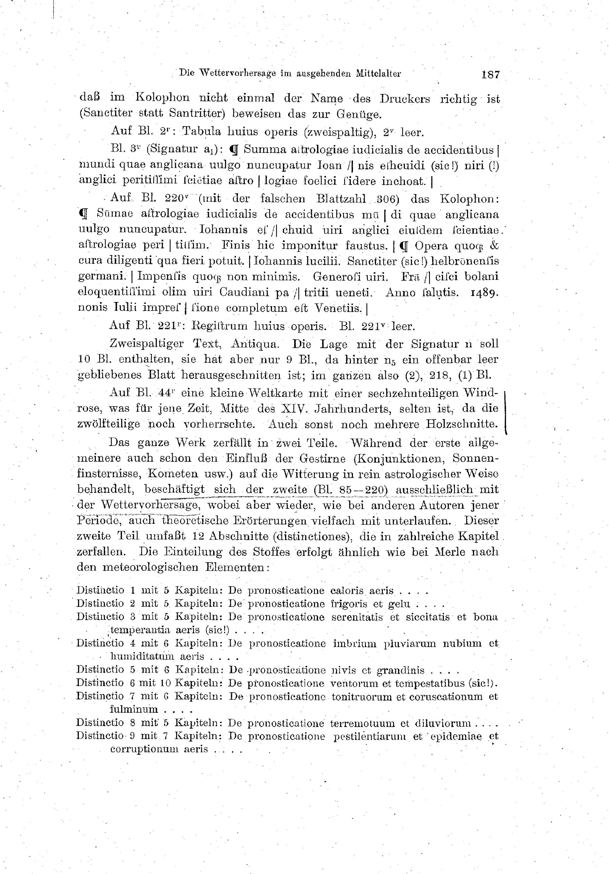 Nr. 8: Die Wettervorhersage im ausgehenden Mittelalter (XII. bis XV. Jahrhundert...