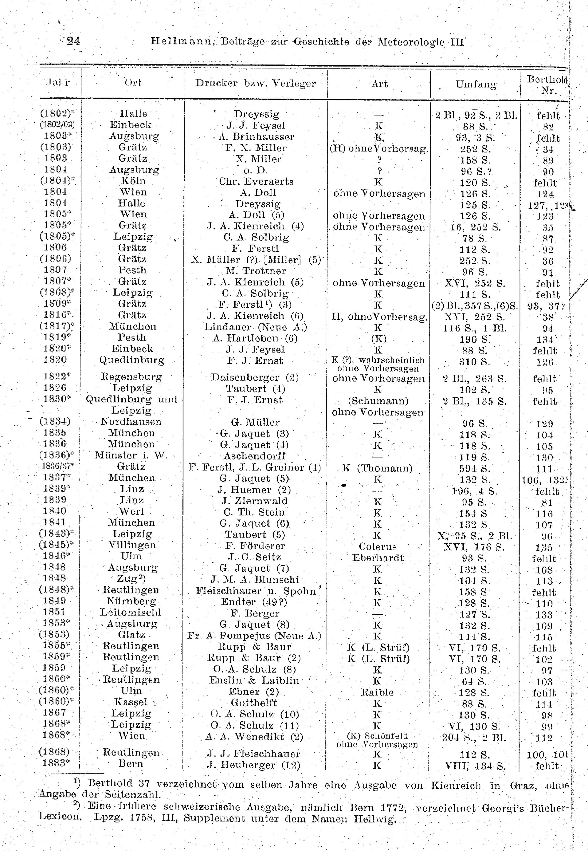 Verzeichnis meteorologischer Flugschriften mit genauen Titelangaben