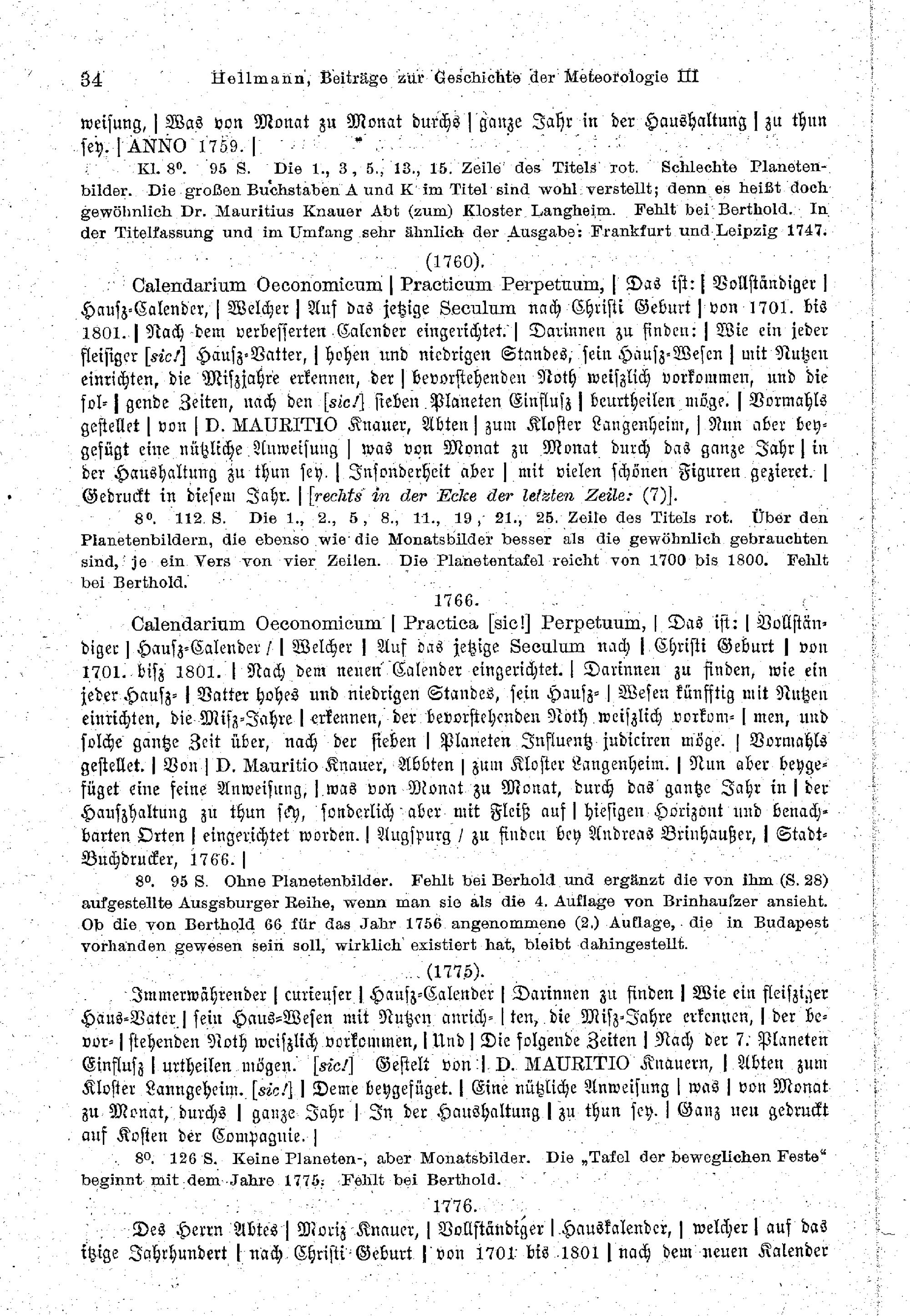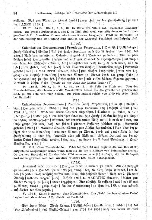 Beschreibung von 85 Ausgaben des hundertjährigen Kalenders