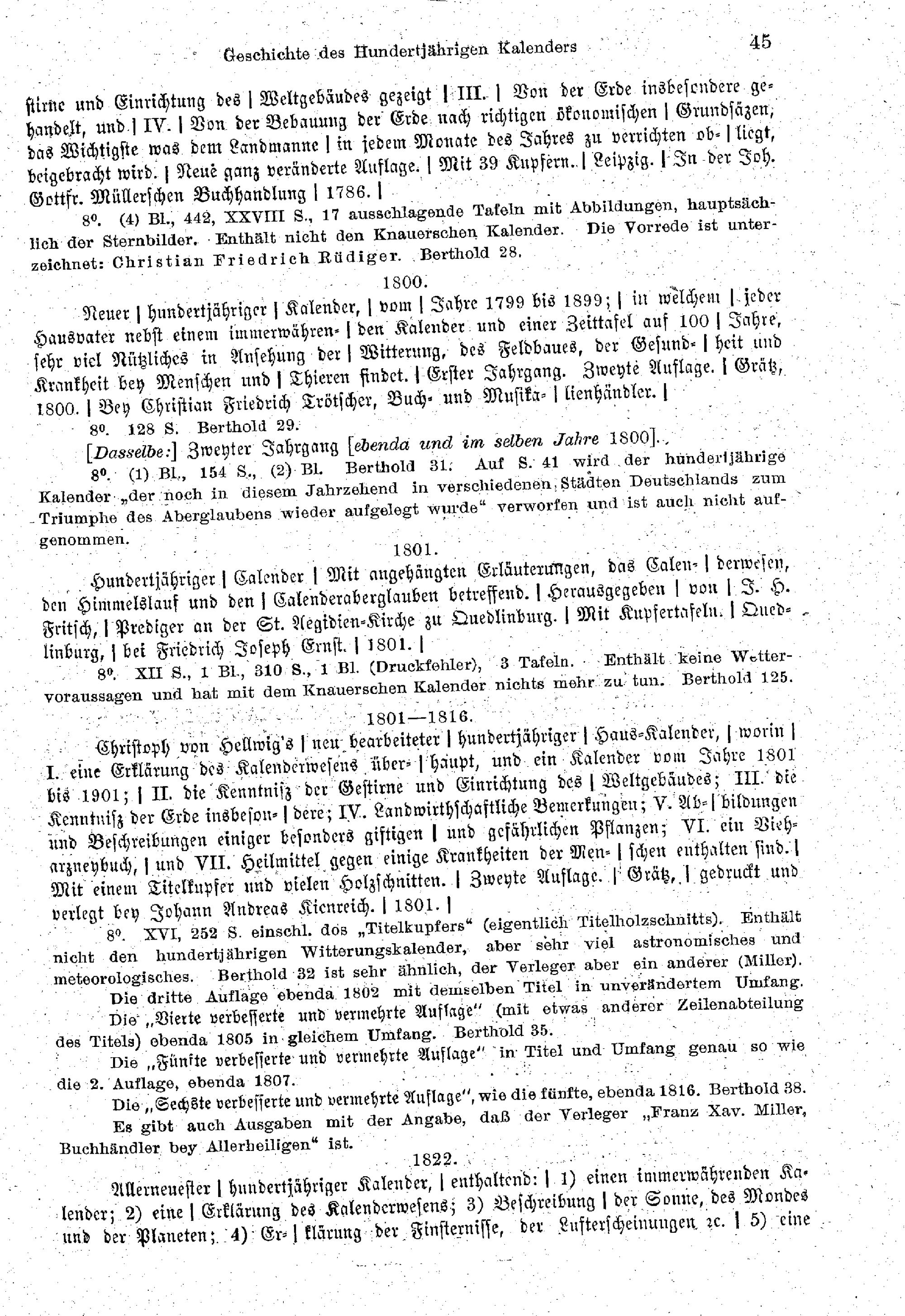 Beschreibung von 85 Ausgaben des hundertjährigen Kalenders