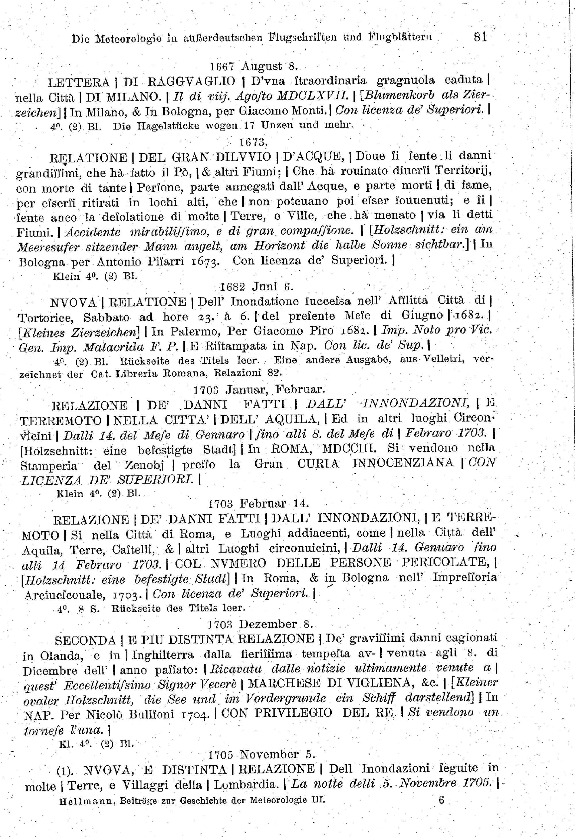 Verzeichnis meteorologischer Flugschriften mit genauen Titelangaben