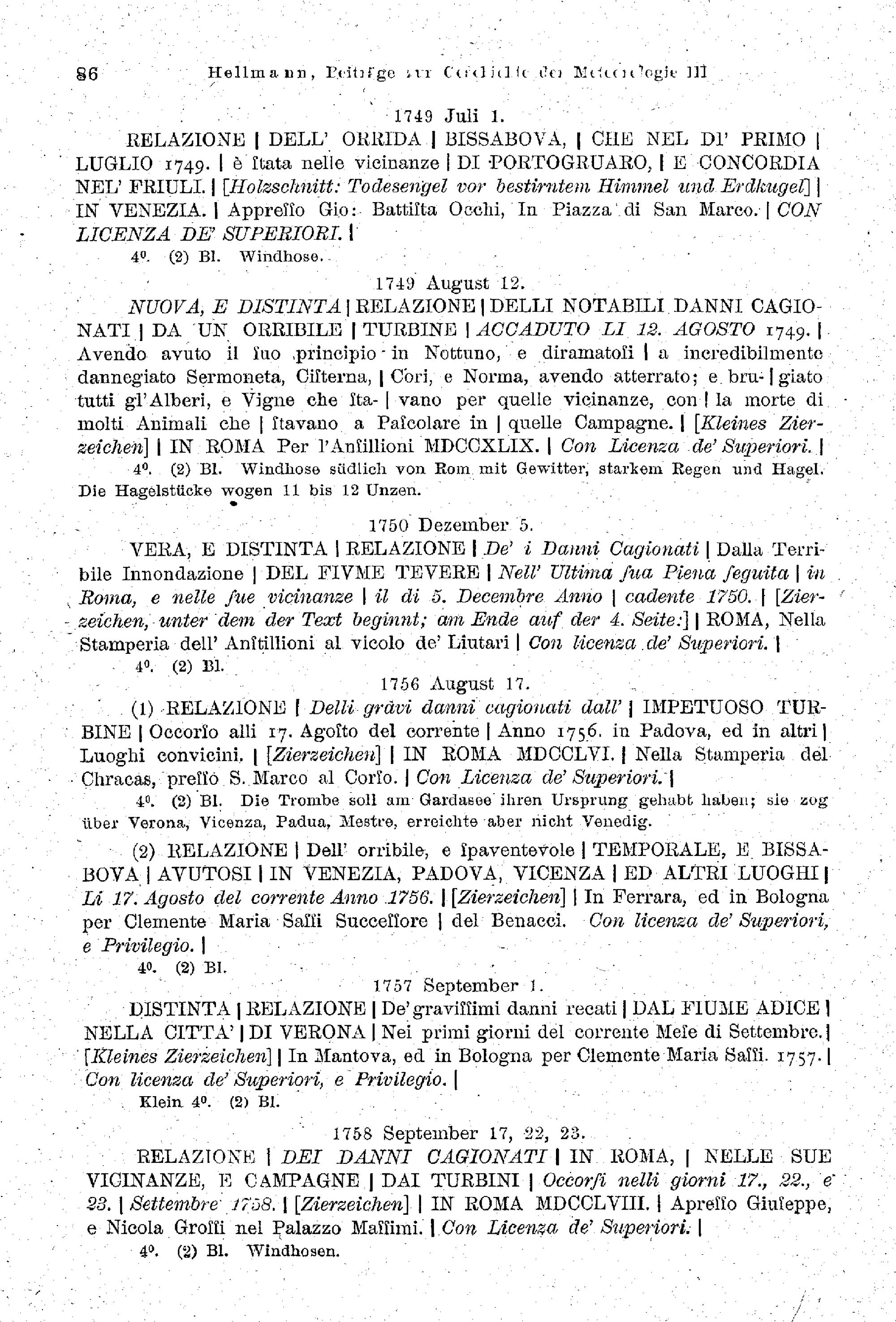 Verzeichnis meteorologischer Flugschriften mit genauen Titelangaben