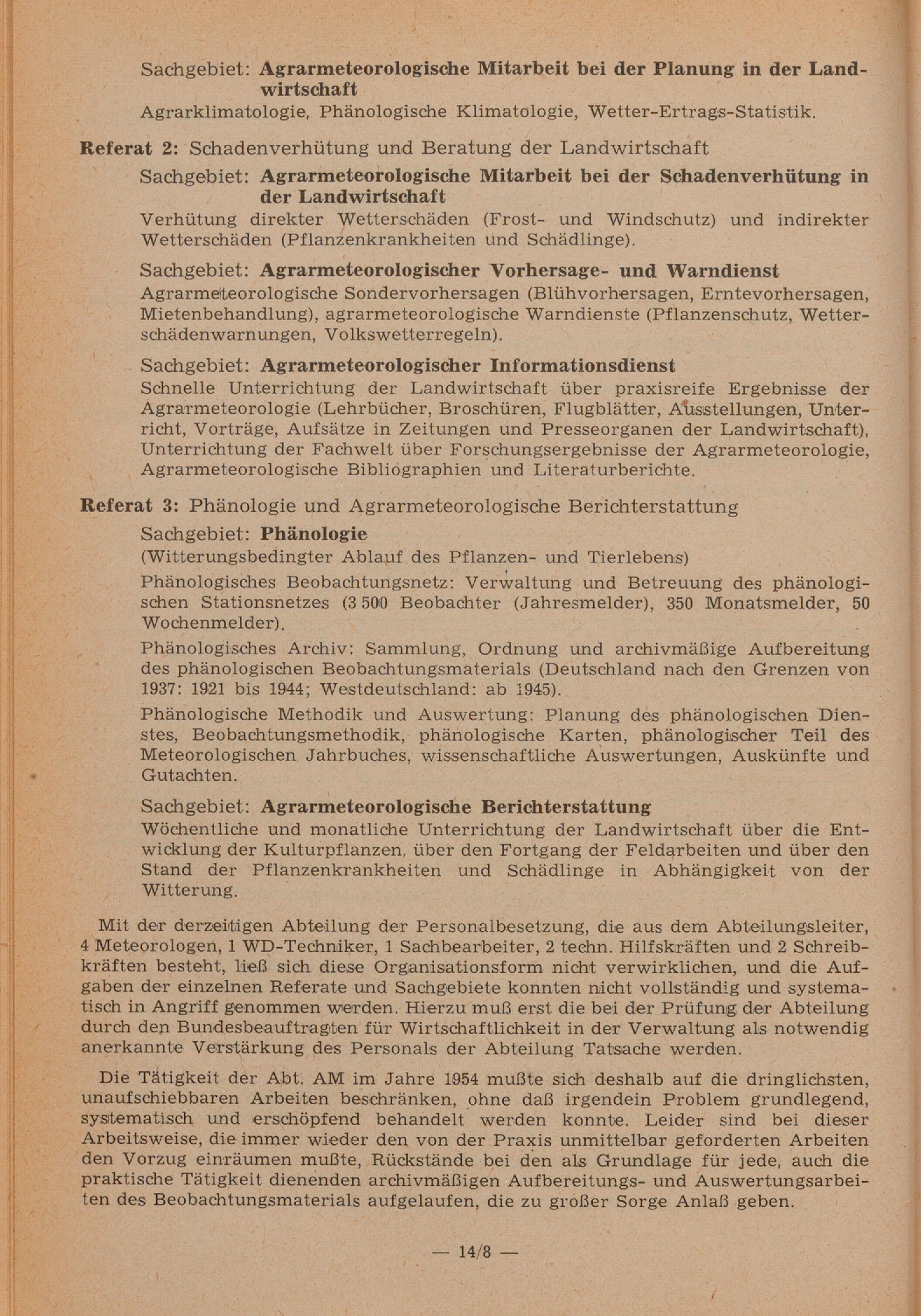 Tätigkeitsbericht der Abteilung Agrarmeteorologie in der Zentralstelle des Deutschen...