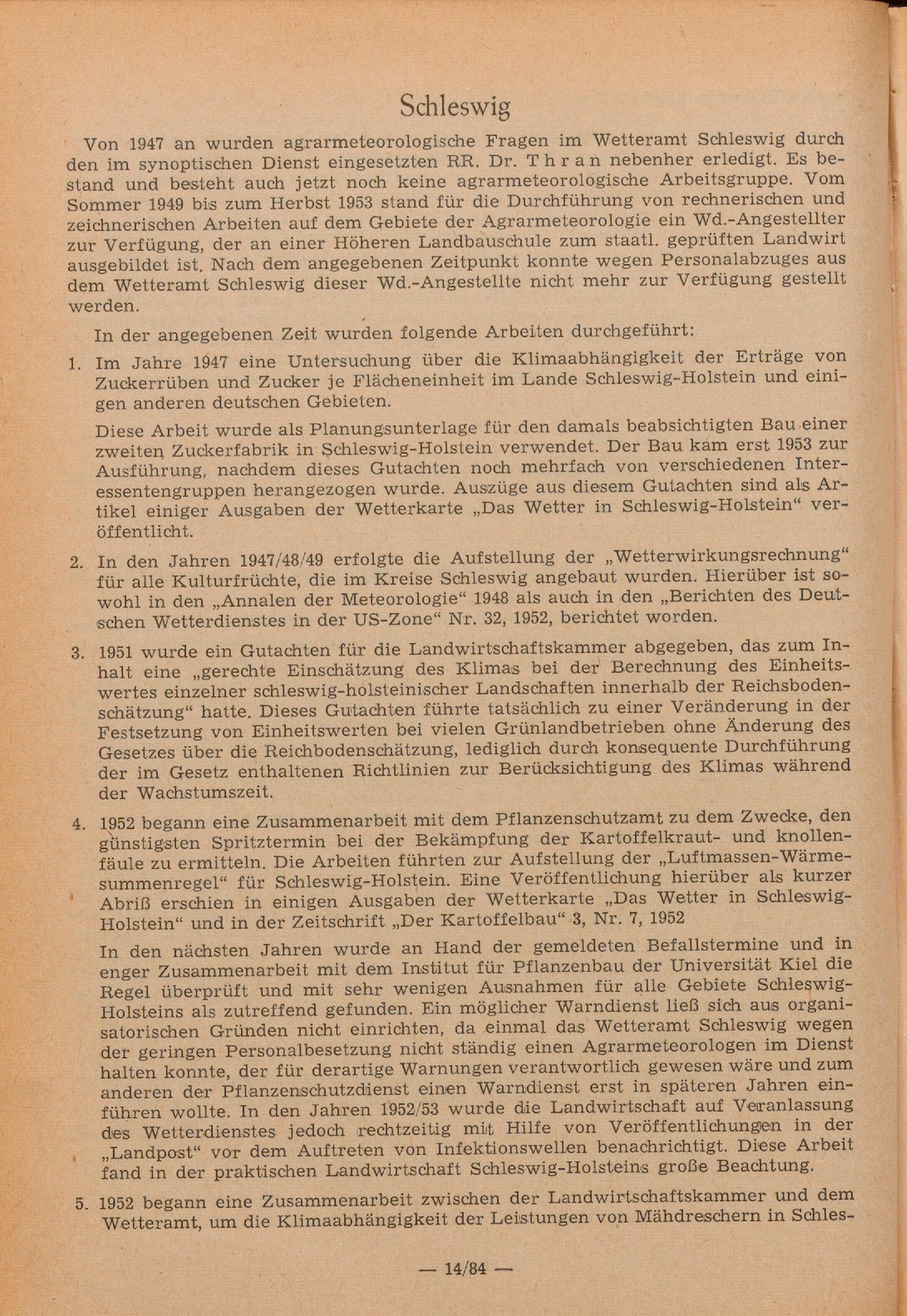 Tätigkeitsberichte der Agrarmeteorologischen Dienststellen