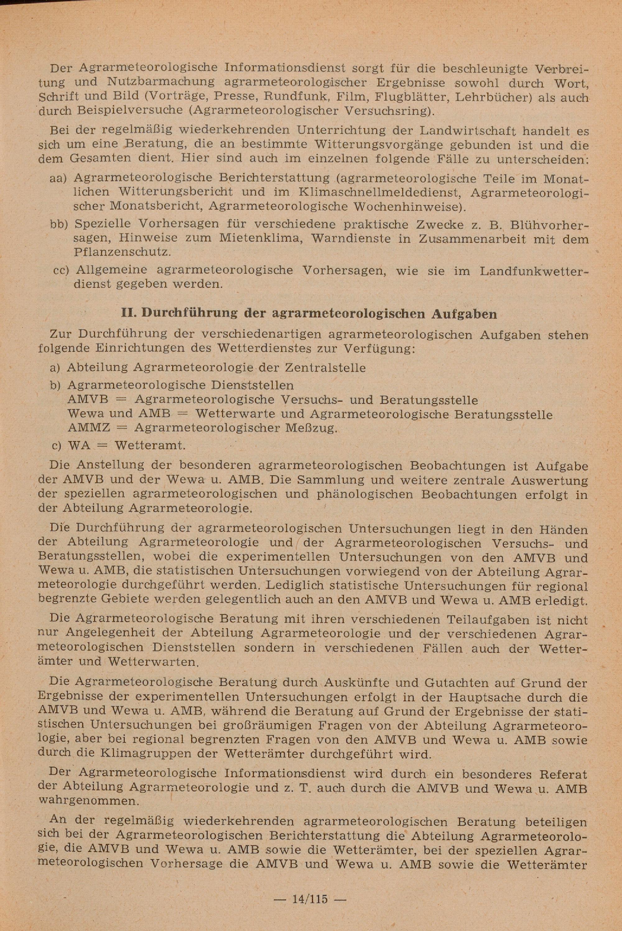 Tätigkeitsberichte der Agrarmeteorologischen Dienststellen