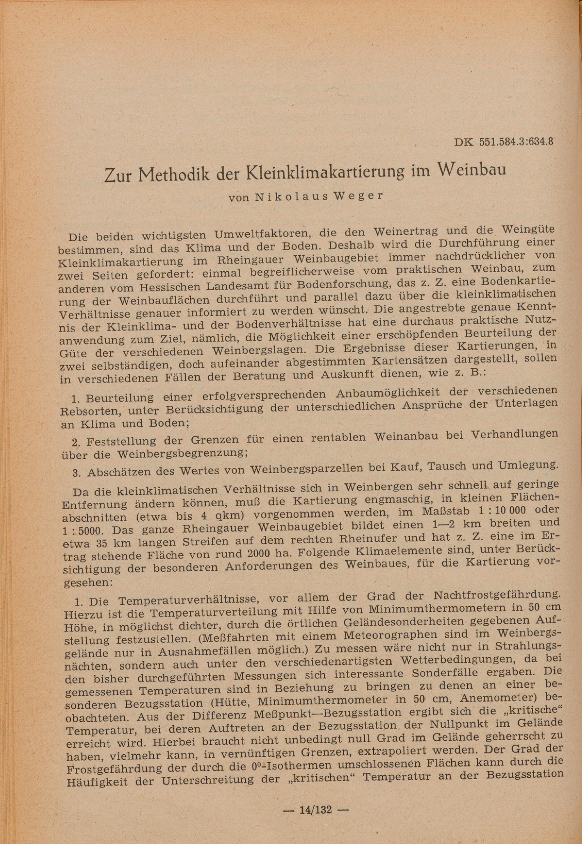 Zur Methodik der Kleinklimakartierung im Weinbau / Nikolaus Weger