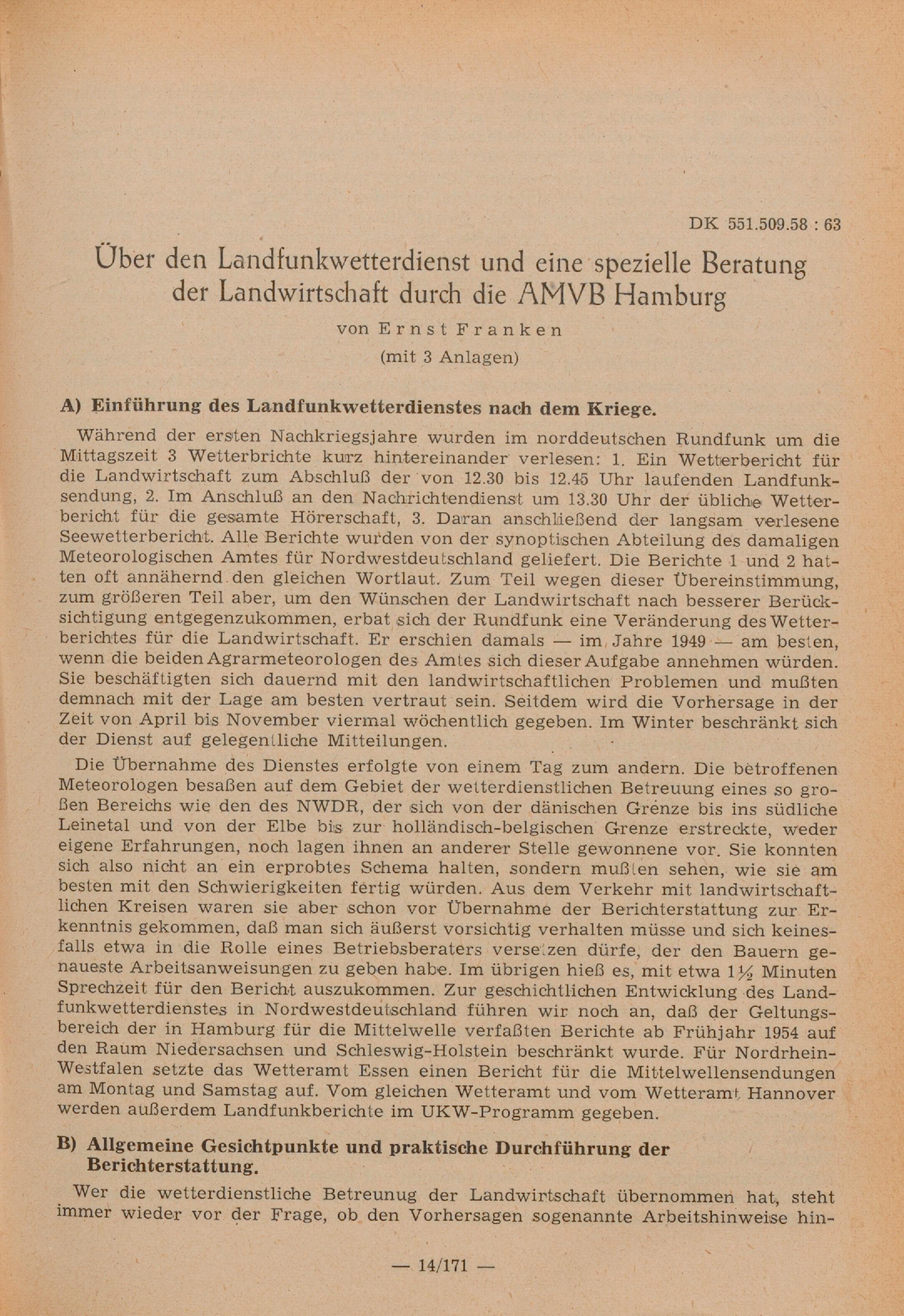 Über den Landfunkwetterdienst und eine spezielle Beratung der Landwirtschaft durch...