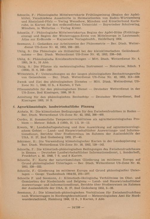 Veröffentlichungen agrarmeteorologischen Inhalts von Angehörigen des Deutschen W...