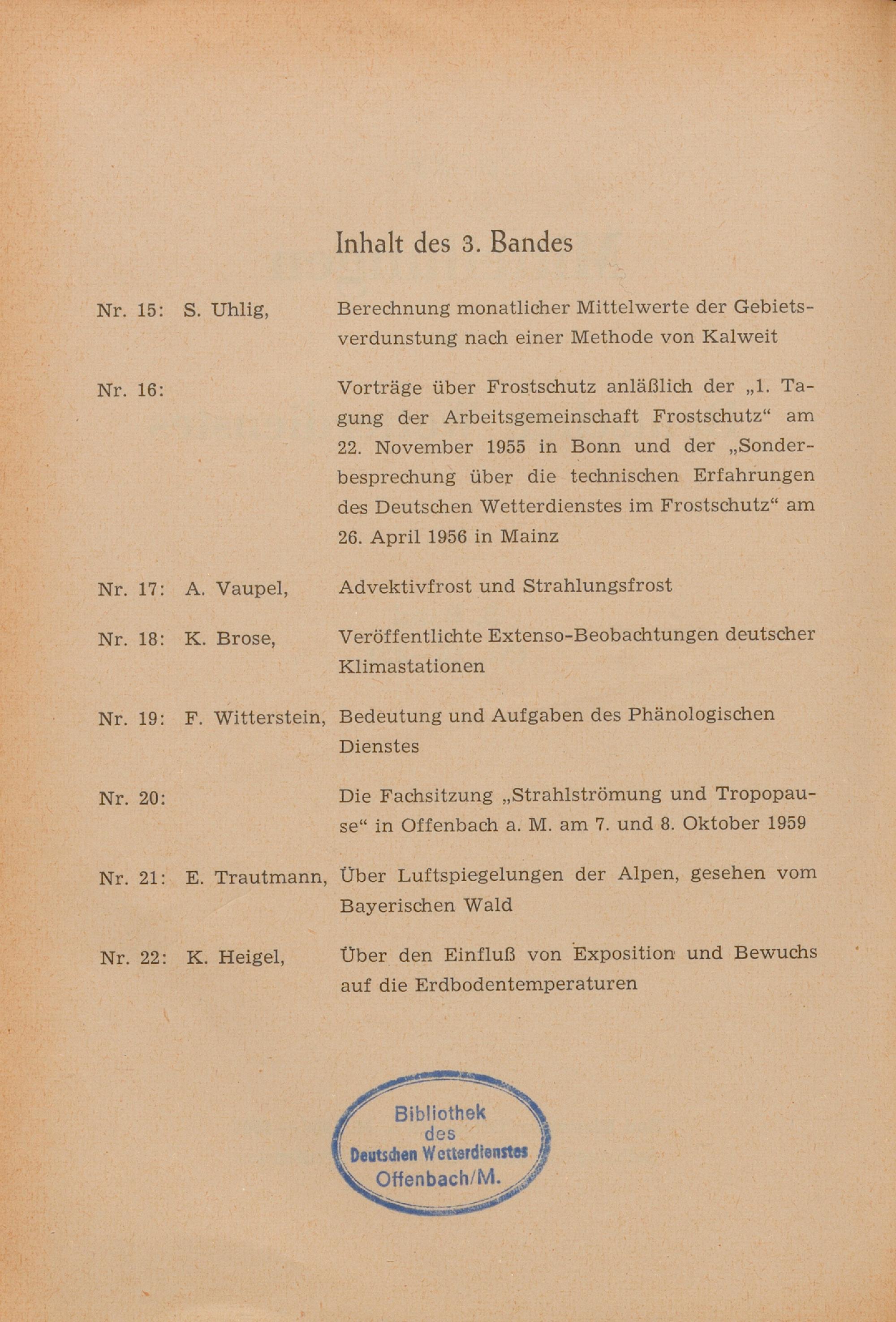 Die Agrarmeteorologen-Tagung in Frankfurt a. M. vom 14. bis 17. März 1955 / Deutscher Wetterdienst