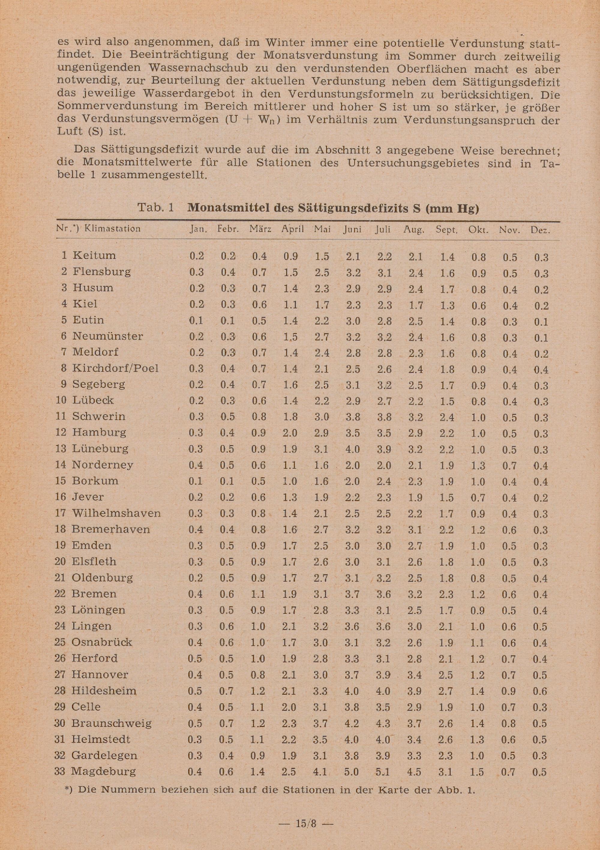Berechnung monatlicher Mittelwerte der Gebietsverdunstung nach einer Methode von Kalweit : (mit 15 Tabellen im Text) / von Siegfried Uhlig