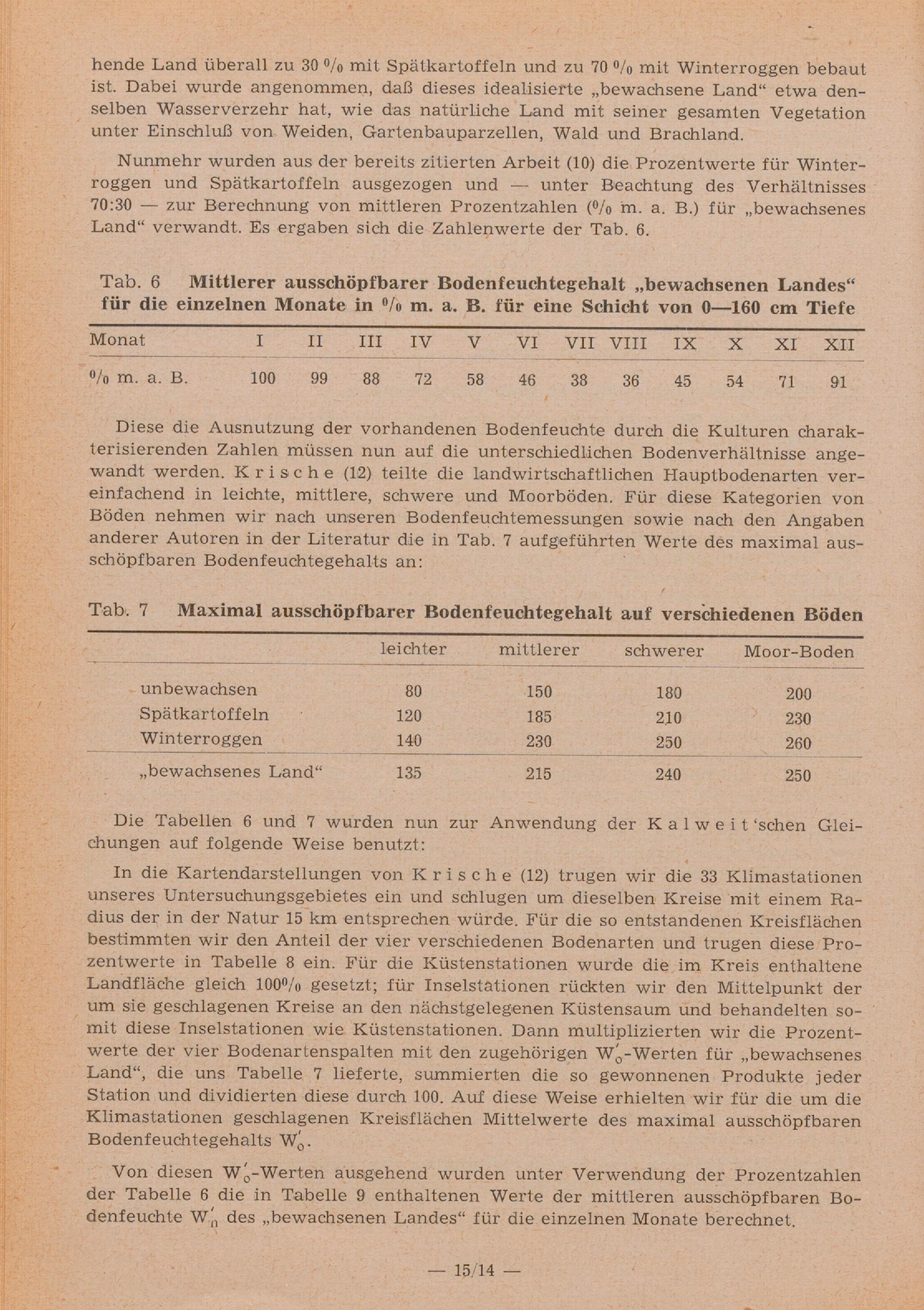 Berechnung monatlicher Mittelwerte der Gebietsverdunstung nach einer Methode von Kalweit : (mit 15 Tabellen im Text) / von Siegfried Uhlig
