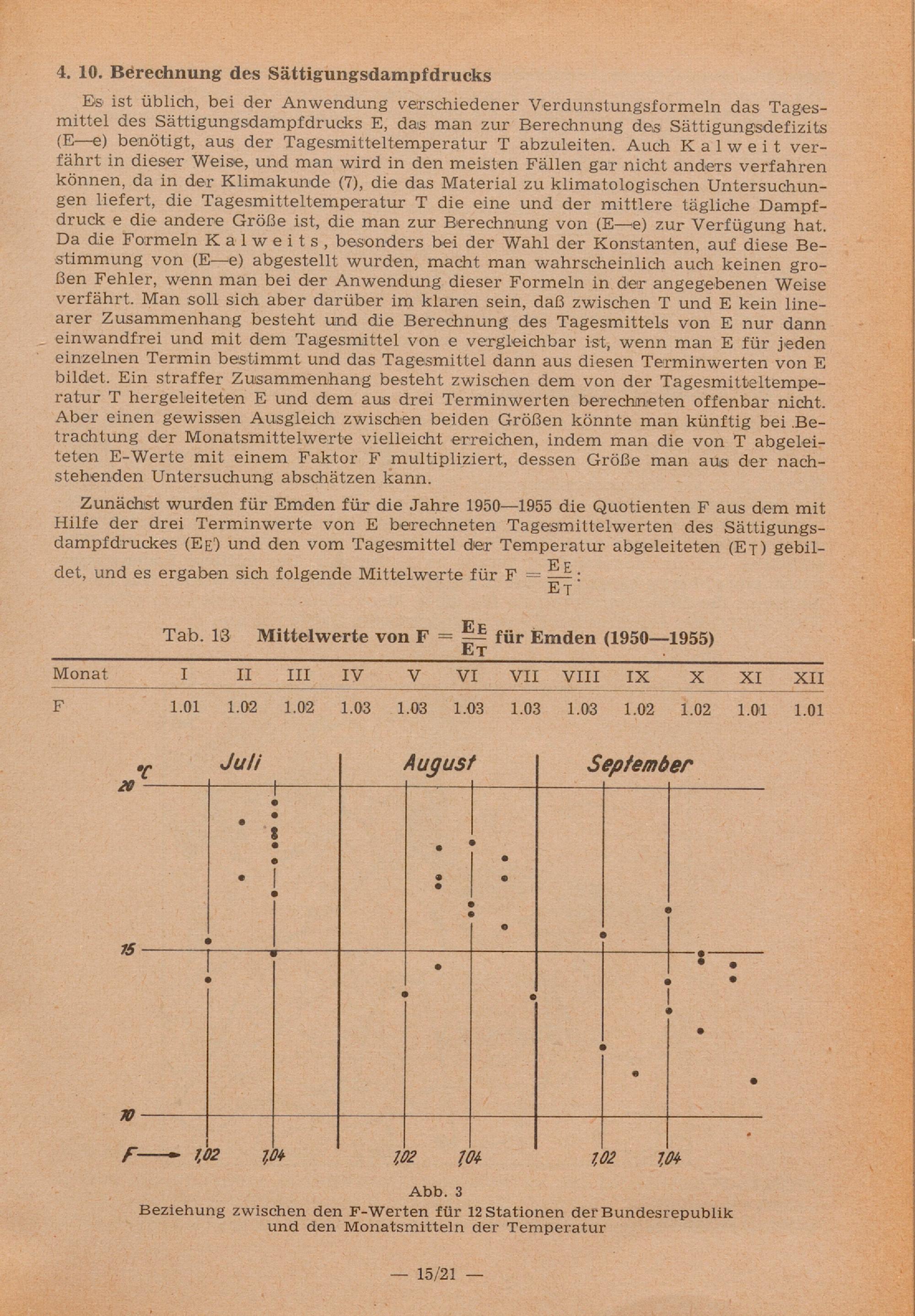 Berechnung monatlicher Mittelwerte der Gebietsverdunstung nach einer Methode von Kalweit : (mit 15 Tabellen im Text) / von Siegfried Uhlig