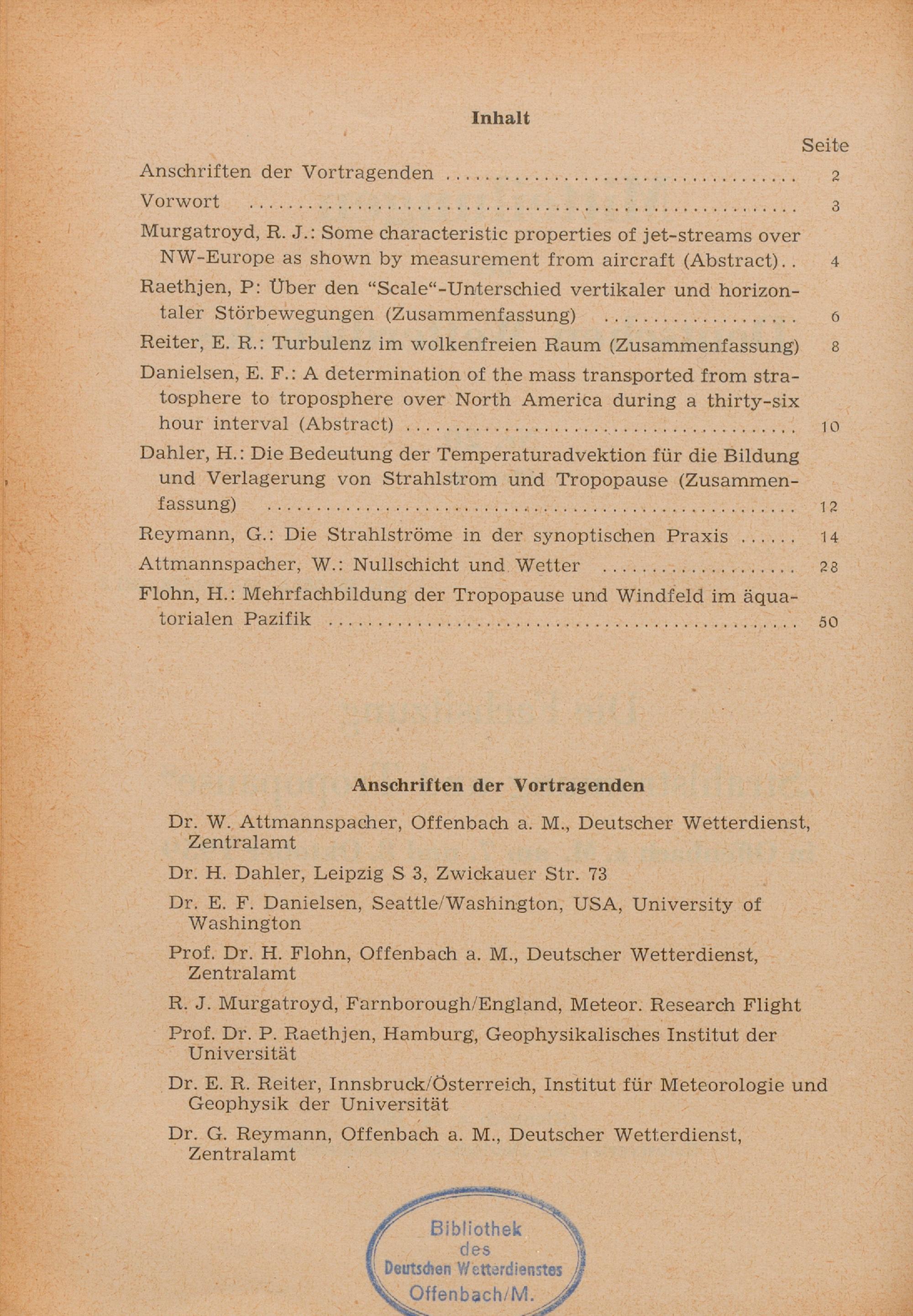 Die Fachsitzung "Strahlströmung und Tropopause" in Offenbach a. M. am 7. und 8. Oktober...