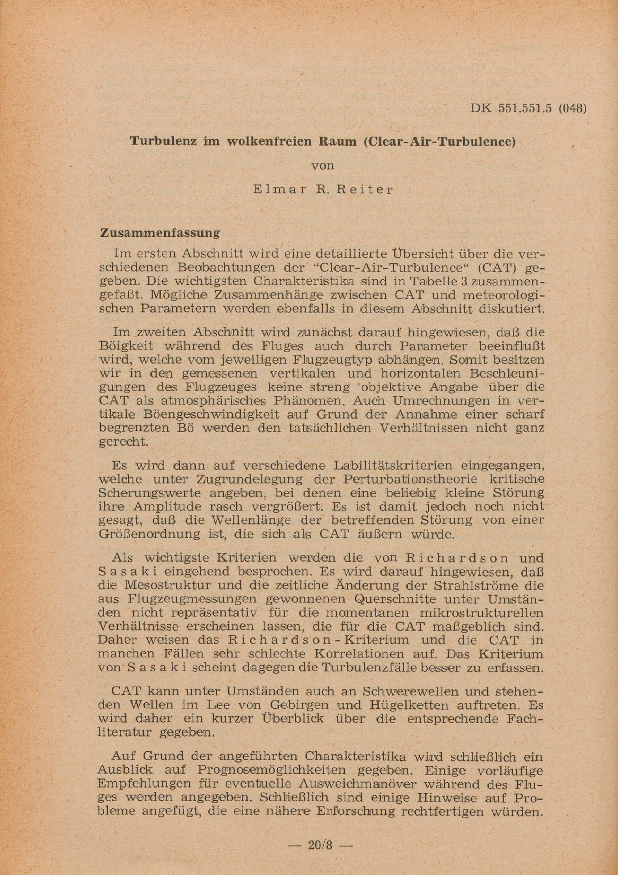 Turbulenz im wolkenfreien Raum (Clear-Air-Turbulence) / Elmar R. Reiter