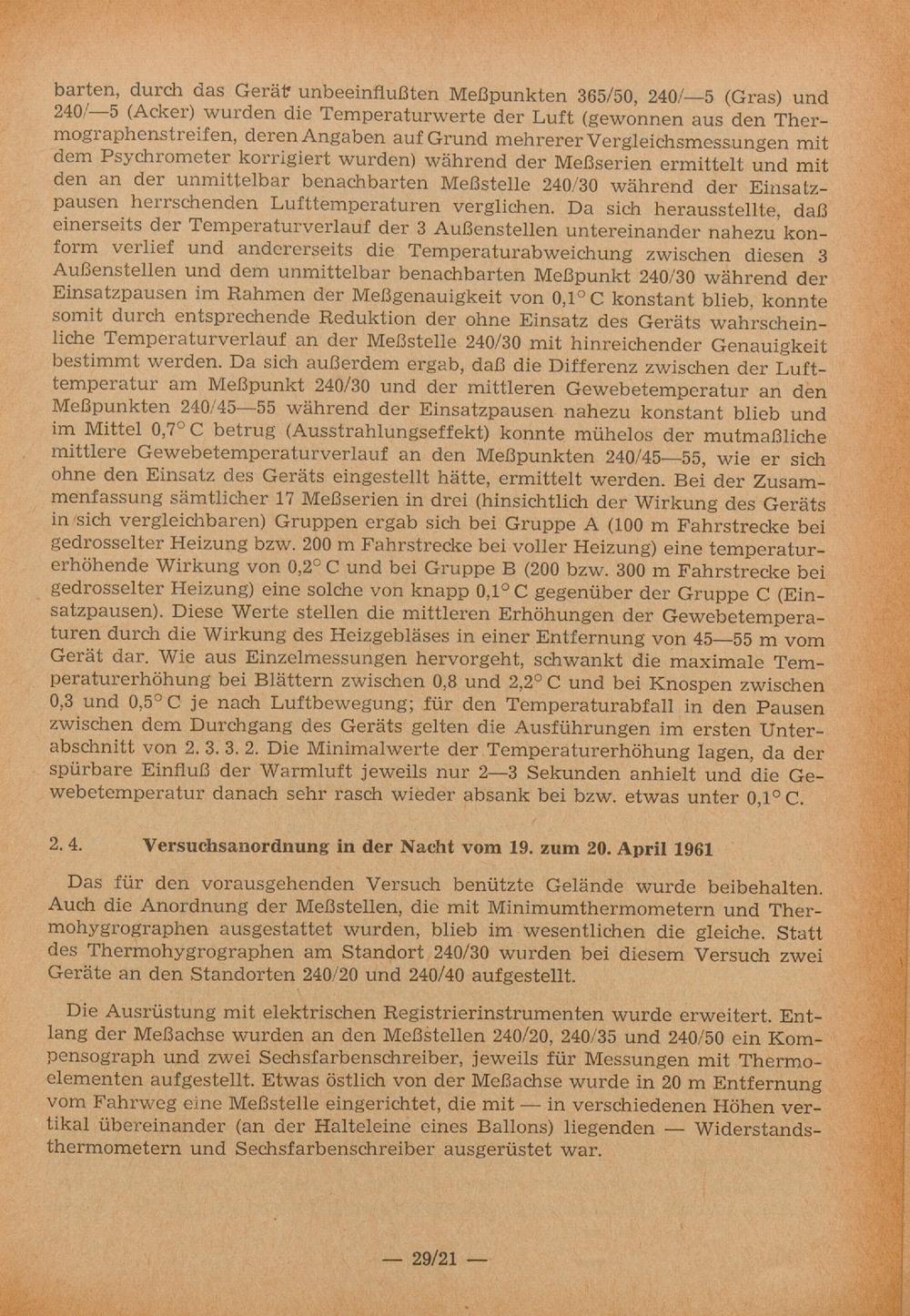 2. Vergleich verschiedener Meß- und Auswertungsmethoden zur Prüfung der Wirkung eines fahrbaren Heizgebläses bei der Frostbekämpfung im Gelände / Karl Höschele und Erwin King