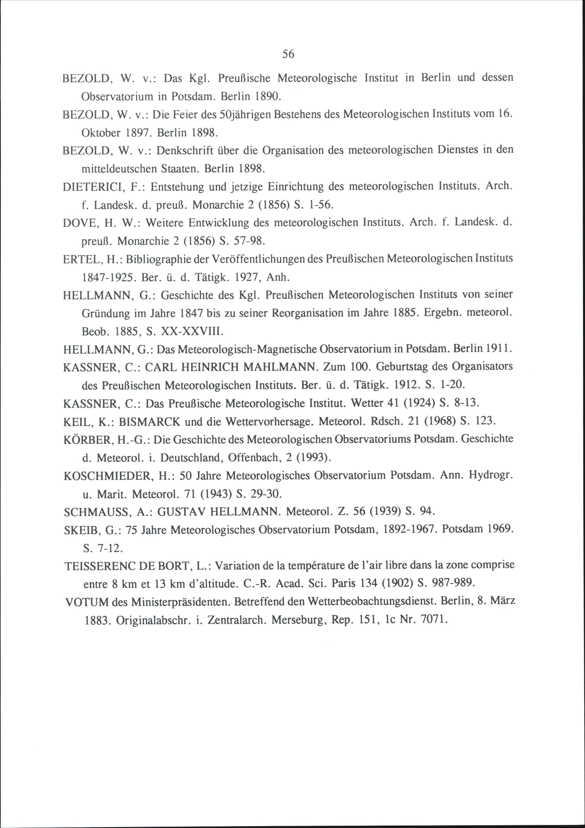 Die Entwicklung des staatlichen Wetterdienstes in Deutschland bis zur Schaffung des Reichswetterdienstes im Jahre 1934 : Übersichten und Chroniken