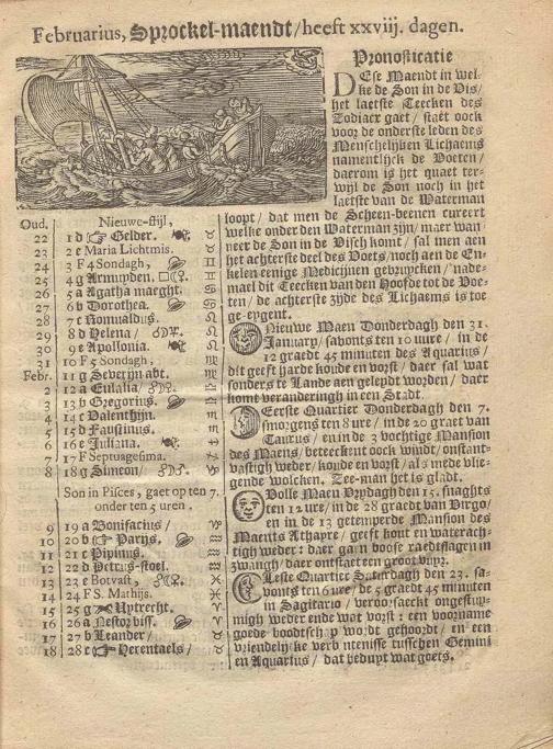 De Oprechte Italiaensche Waerseggher over de Constellatie der Planeten des Jaers/ 1669 : Als mede wat Landen onder yder Teecken des Zodiacx gelegen zyn, Daer neffens den Almanach, Mitsgaders de Namen der Levereyen van eenige Koningen/ Princen/ Hartogen en Graven/ Fc. Alles tot verlichtinge bau de Liefhebbers onser Prognosticatie / door den Hoog-geleerden Nicolaum Smidt, anders den geleerden Boer genaemt