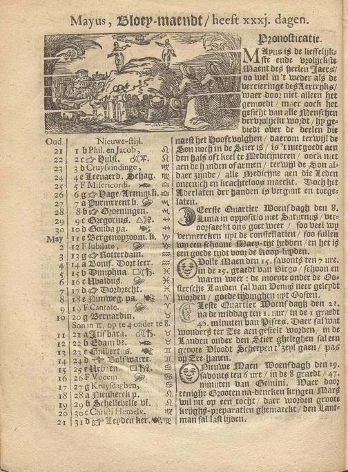 De Oprechte Italiaensche Waerseggher over de Constellatie der Planeten des Jaers/ 1669 : Als mede wat Landen onder yder Teecken des Zodiacx gelegen zyn, Daer neffens den Almanach, Mitsgaders de Namen der Levereyen van eenige Koningen/ Princen/ Hartogen en Graven/ Fc. Alles tot verlichtinge bau de Liefhebbers onser Prognosticatie / door den Hoog-geleerden Nicolaum Smidt, anders den geleerden Boer genaemt