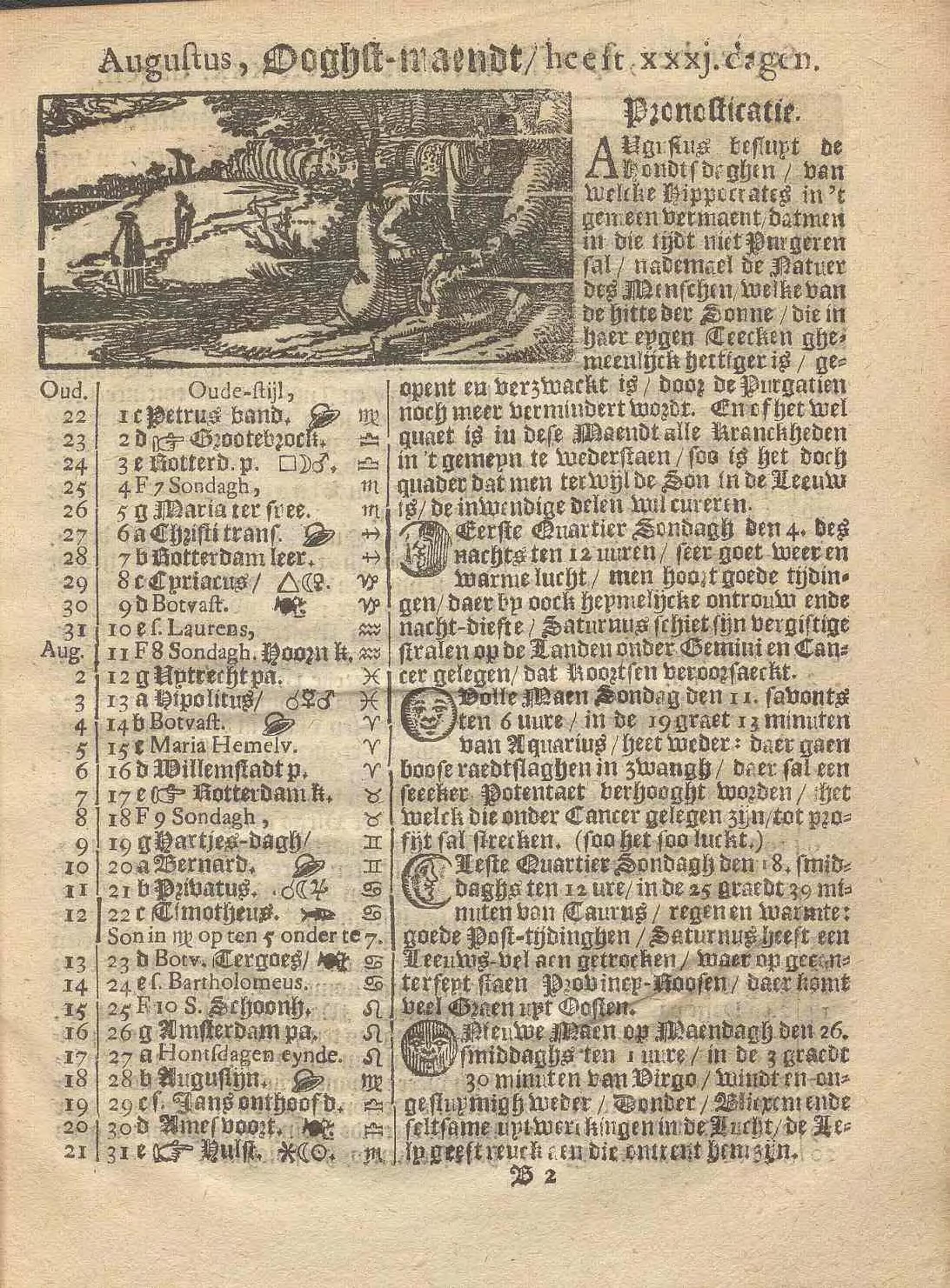 De Oprechte Italiaensche Waerseggher over de Constellatie der Planeten des Jaers/ 1669 : Als mede wat Landen onder yder Teecken des Zodiacx gelegen zyn, Daer neffens den Almanach, Mitsgaders de Namen der Levereyen van eenige Koningen/ Princen/ Hartogen en Graven/ Fc. Alles tot verlichtinge bau de Liefhebbers onser Prognosticatie / door den Hoog-geleerden Nicolaum Smidt, anders den geleerden Boer genaemt