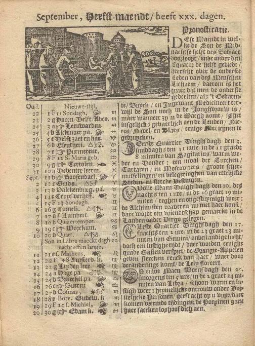 De Oprechte Italiaensche Waerseggher over de Constellatie der Planeten des Jaers/ 1669 : Als mede wat Landen onder yder Teecken des Zodiacx gelegen zyn, Daer neffens den Almanach, Mitsgaders de Namen der Levereyen van eenige Koningen/ Princen/ Hartogen en Graven/ Fc. Alles tot verlichtinge bau de Liefhebbers onser Prognosticatie / door den Hoog-geleerden Nicolaum Smidt, anders den geleerden Boer genaemt