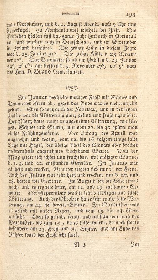 1 (1794) Versuch einiger Beobachtungen über die Witterung der Mark Brandenburg, besonders in der Gegend um Berlin / von Karl Ludwig Gronau (zweyten Prediger der Evangelisch Reformirten Parochial-Kirche, ordentlichen Mitgliede der Berlinischen Gesellschaft Naturforschender Freunde)