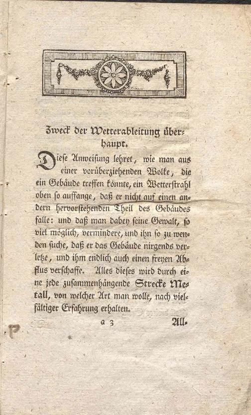 Kurze und deutliche Anweisung, wie man durch einen an jedem Orte wohnenden Schmidt, oder andere im Metall arbeitende Handwerker, eine sichere Wetterableitung mit sehr geringen Kosten an allerhand Gebäuden anlegen lassen kann