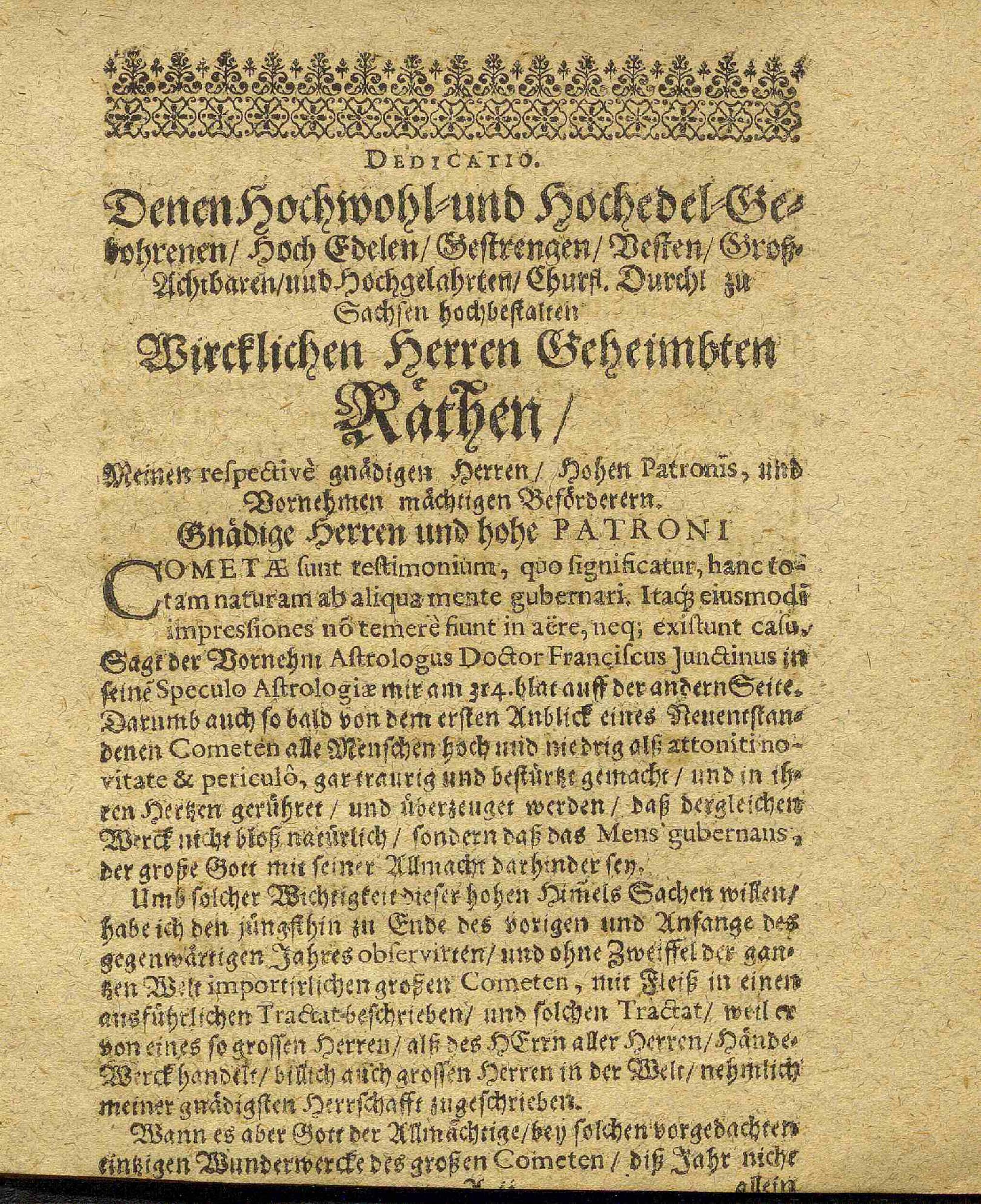 Dreyfache Zugabe Der Admirabilium In Aere Et Æthere Oder Wunderbaren Wercke Gottes : In der Lufft und am Gestirnten Himmel, So auff vorher erschienenen großen Cometen, sich noch ferner begeben, An Dreyen Sonnen und Regenbogen, An erschrecklichen Feuer-Zeichen, Und an einen Neuen Cometen, Welche anderweit vor- in- und nach denen Heiligen Oster-Feyertagen dieses 1665. Jahres observiret worden / von Churfl. Durchl. zu Sachsen bestalten Kunst-Kämmerer in Dreßden, Tobias Beuteln