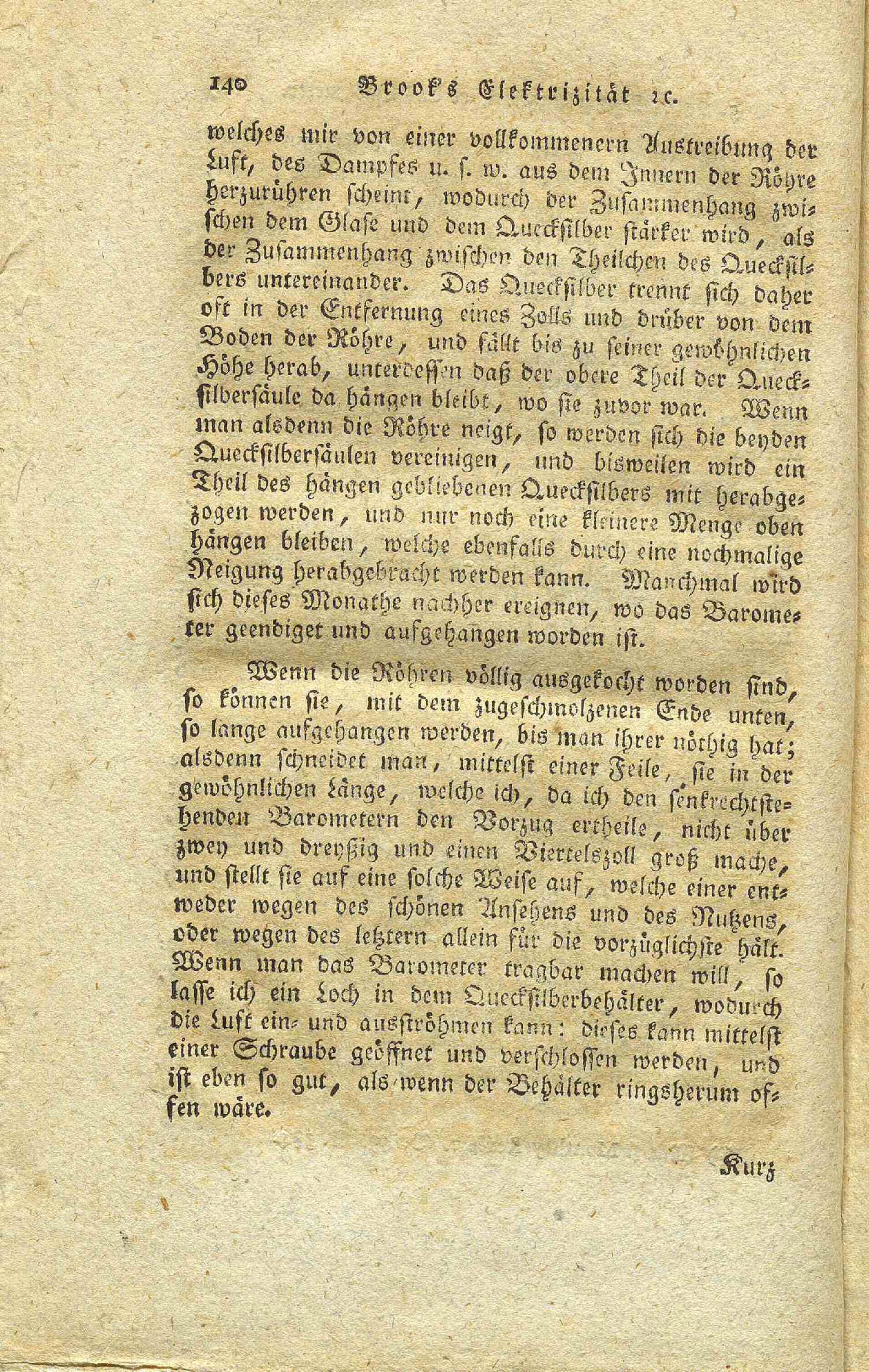 Johann Brook's vermischte Erfahrungen über die Elektrizität, die Luftpumpe und das Barometer : mit Kupfern und Chursächsischer Freiheit / Aus dem Englischen mit Zusätzen und Anmerkungen von D. Karl Gottlob Kühn