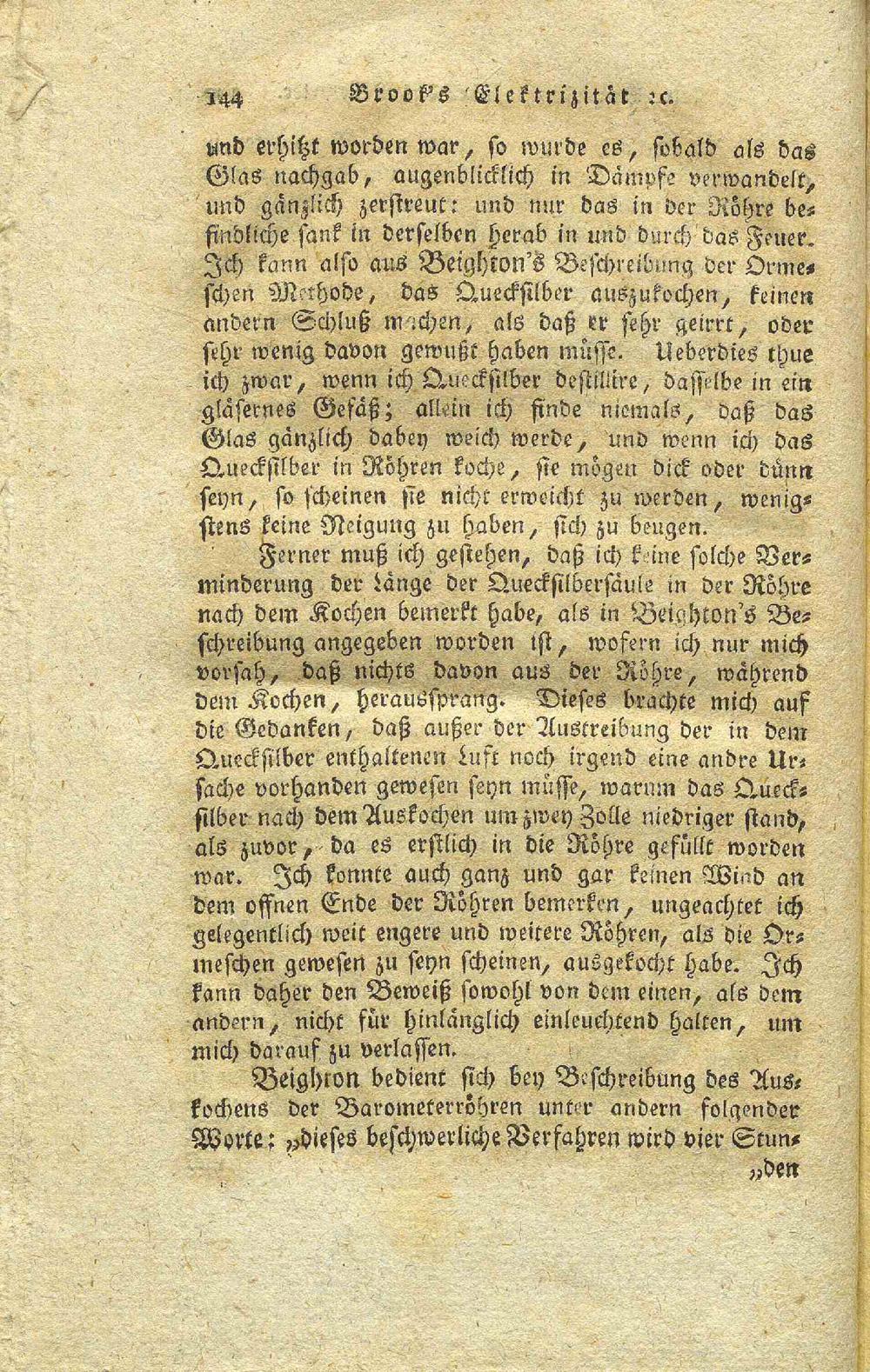Johann Brook's vermischte Erfahrungen über die Elektrizität, die Luftpumpe und das Barometer : mit Kupfern und Chursächsischer Freiheit / Aus dem Englischen mit Zusätzen und Anmerkungen von D. Karl Gottlob Kühn
