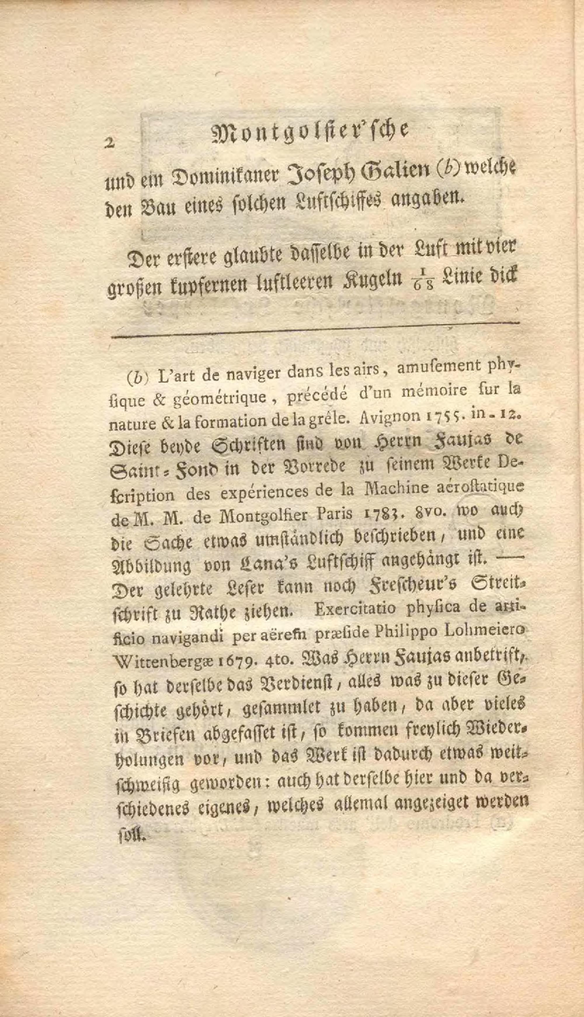 Montgolfier'sche Luftkörper oder Aerostatische Maschinen : eine Abhandlung, worinn die Kunst sie zu verfertigen und die Geschichte der bisher damit angestellten Versuche beschrieben werden ; Nebst einer Beschreibung der zwo ersten Reisen durch die Luft, und Hrn. D. Würtz Gedanken über die Ursachen des Steigens dieser Luftkugeln, welche er in dem Musee zu Paris den I. Sept. 1783 vorgelesen hat / von Friedrich Ludwig Ehrmann, J.U.L.