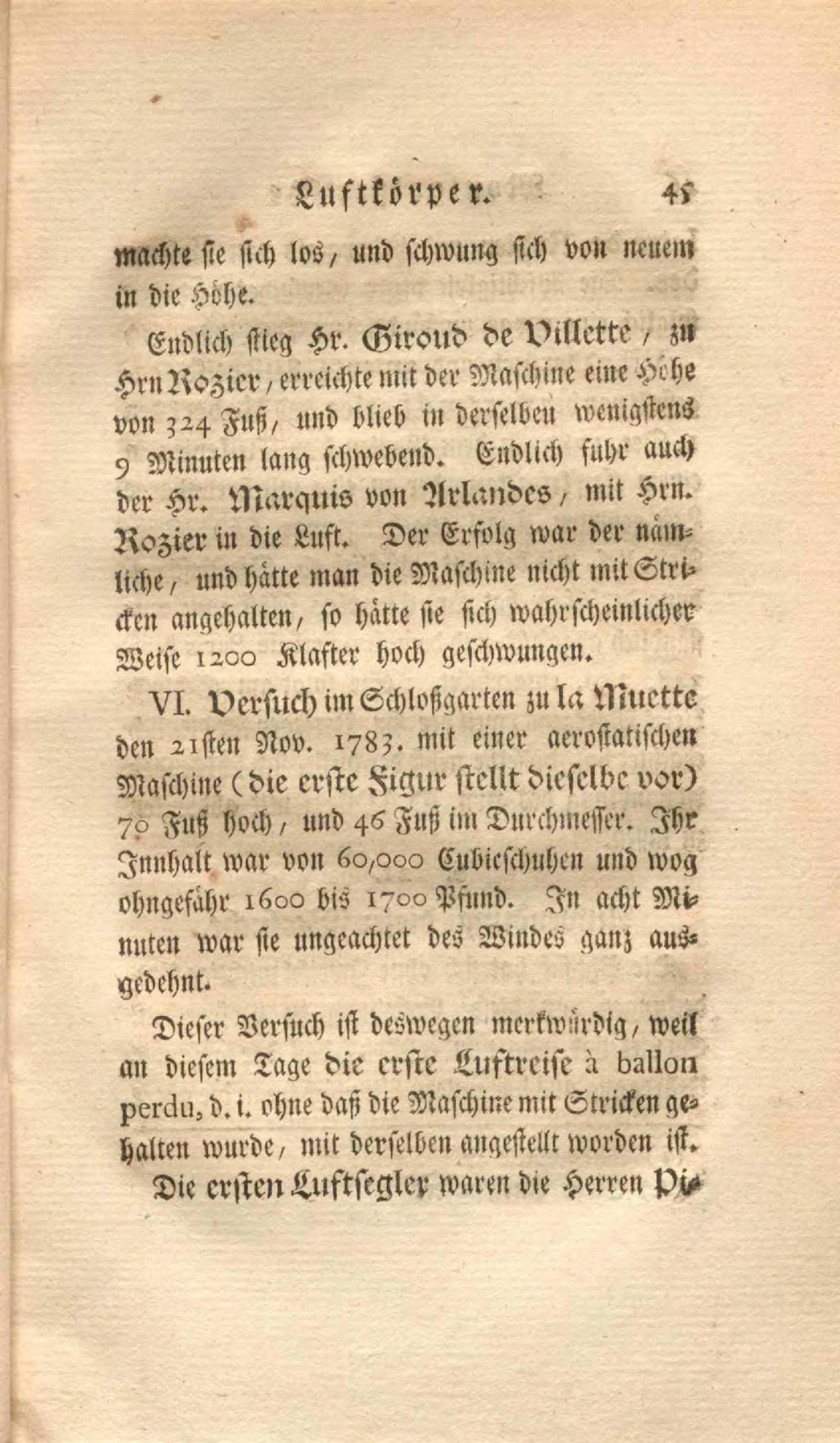 Montgolfier'sche Luftkörper oder Aerostatische Maschinen : eine Abhandlung, worinn die Kunst sie zu verfertigen und die Geschichte der bisher damit angestellten Versuche beschrieben werden ; Nebst einer Beschreibung der zwo ersten Reisen durch die Luft, und Hrn. D. Würtz Gedanken über die Ursachen des Steigens dieser Luftkugeln, welche er in dem Musee zu Paris den I. Sept. 1783 vorgelesen hat / von Friedrich Ludwig Ehrmann, J.U.L.
