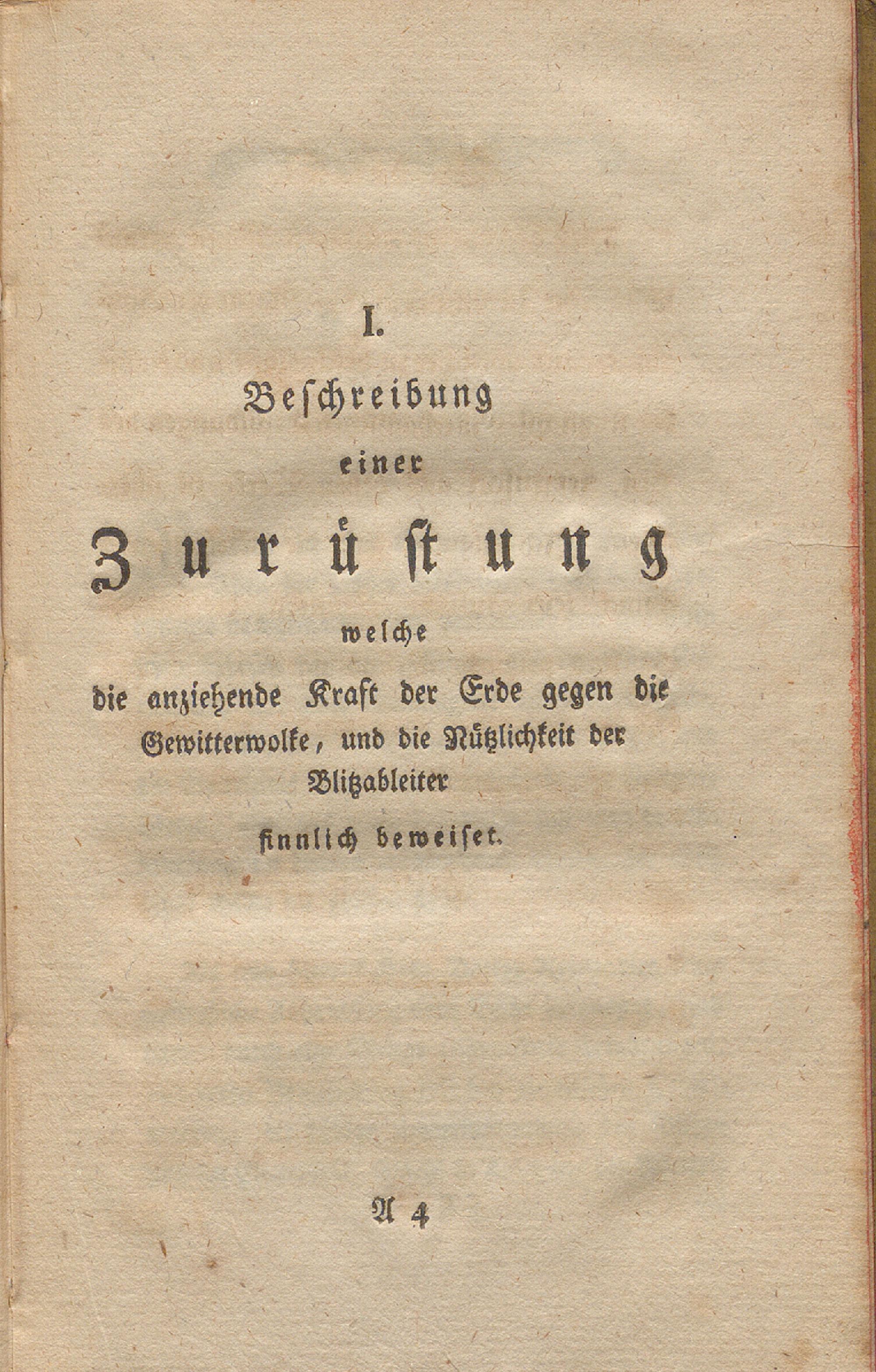 N. A. J. Kirchhofs Beschreibung einer Zurüstung welche die anziehende Kraft der Erde gegen die Gewitterwolke und die Nützlichkeit der Blitzableiter sinnlich beweiset : nebst einer Kupfertafel und einer Beschreibung verschiedener nützlichen Maschinen, aus Herrn Fergusons Vorlesungen übersetzt