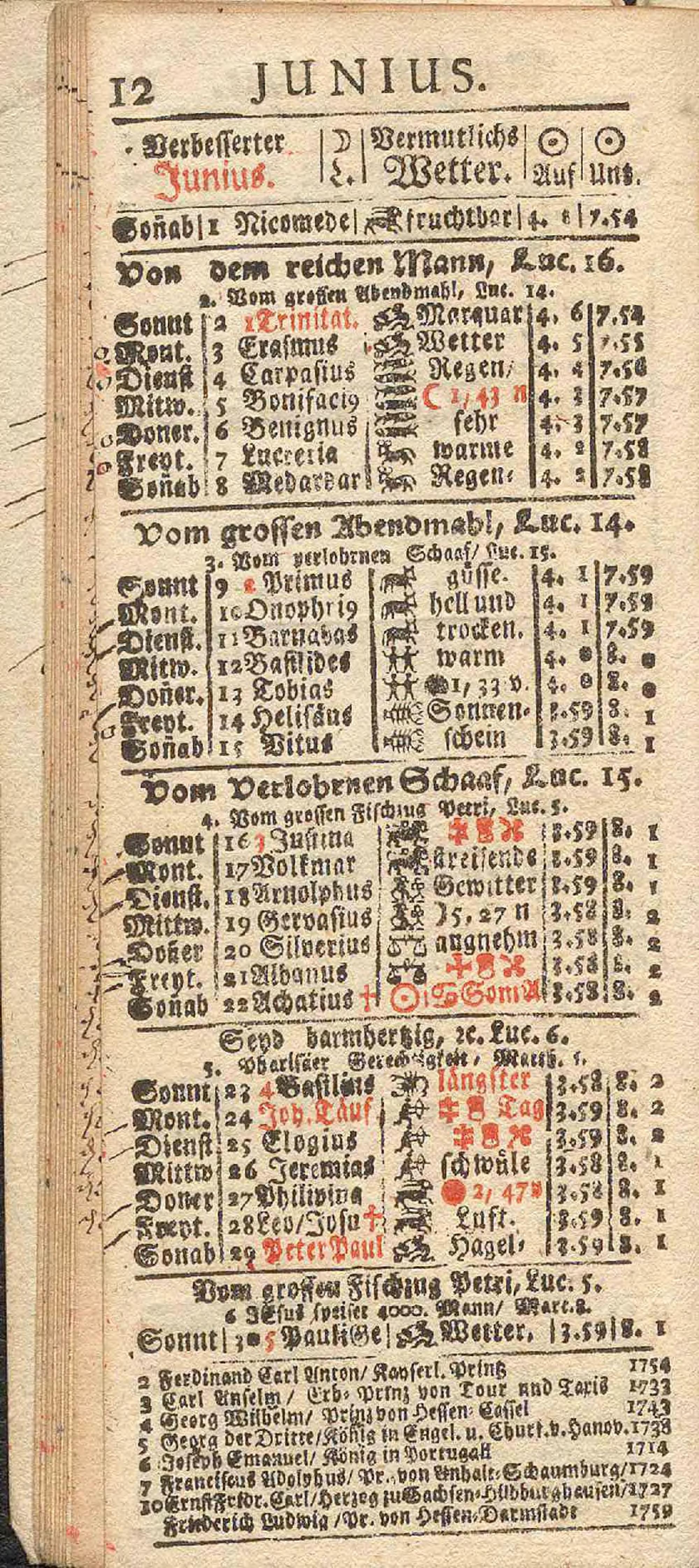 Compendieuser Heßischer Schreib-Kalender Auf das Jahr nach unsers Herrn Jesu Christi Geburt 1771 (Welches ein gemeines Jahr ist) : Darinnen zu finden Die Monds-Brüche und derselben Witterung; der Sonn- u. Monds-Auf- und Untergang auf alle Tage: auch vorfallende sicht- und unsichtb. Sonn- und Monds-Finsternissen; die Tag- und Nacht-Länge; Der sieben Planeten-Lauf / auf den Mittag jedes ersten Monats-Tag; Vergleichung des Nürberg. Gewichts und Elen mit andern vornehmen Städten; Anzeige der fürnehmstern Messen und Märkte; Die Banco-Sperr zu Venedig/Amsterdam/Hamburg und Nürnberg ...