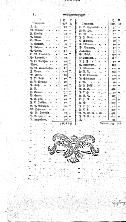 Berechnung der Einnahme und Vertheilung der gesammelten Beiträge zur Unterstüzung unserer bei der Waßerfluth den 27. und 28. Februar 1784. verunglückten Mitbürger
