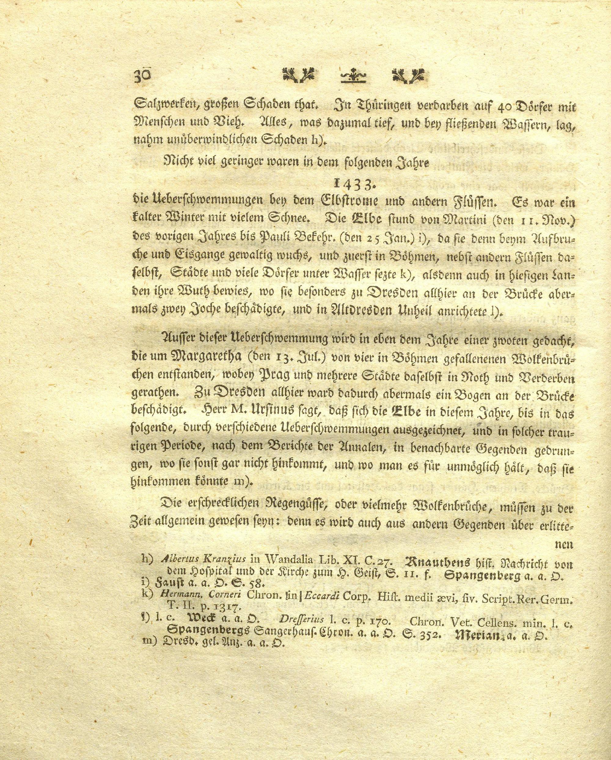 Zweyter Abschnitt: Von einigen großen Wasserfluthen des Elbstroms, un der dahin einfallenden Flüsse, vom sechsten bis zum Endes des zehenden Jahrhunderts