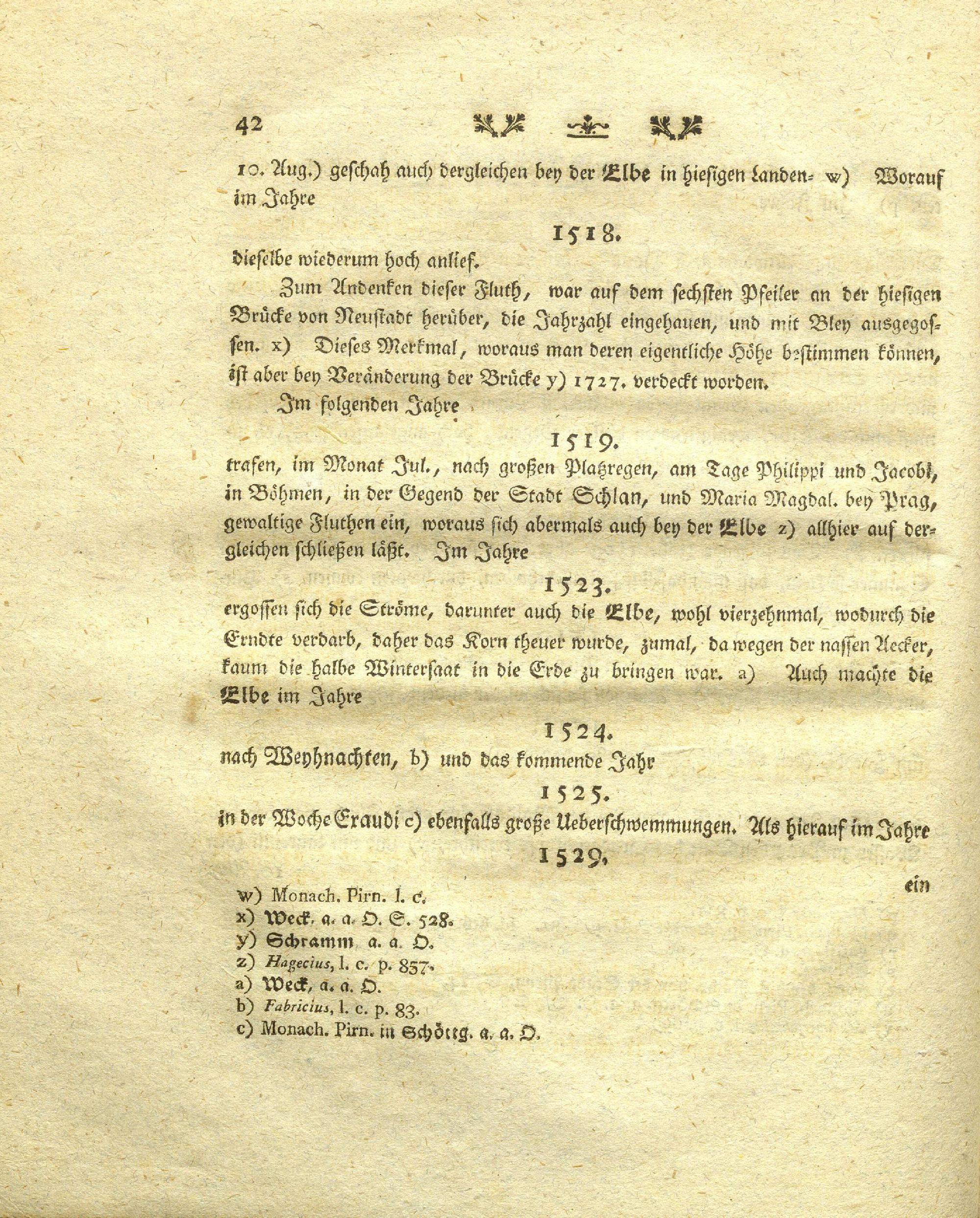 Zweyter Abschnitt: Von einigen großen Wasserfluthen des Elbstroms, un der dahin einfallenden Flüsse, vom sechsten bis zum Endes des zehenden Jahrhunderts