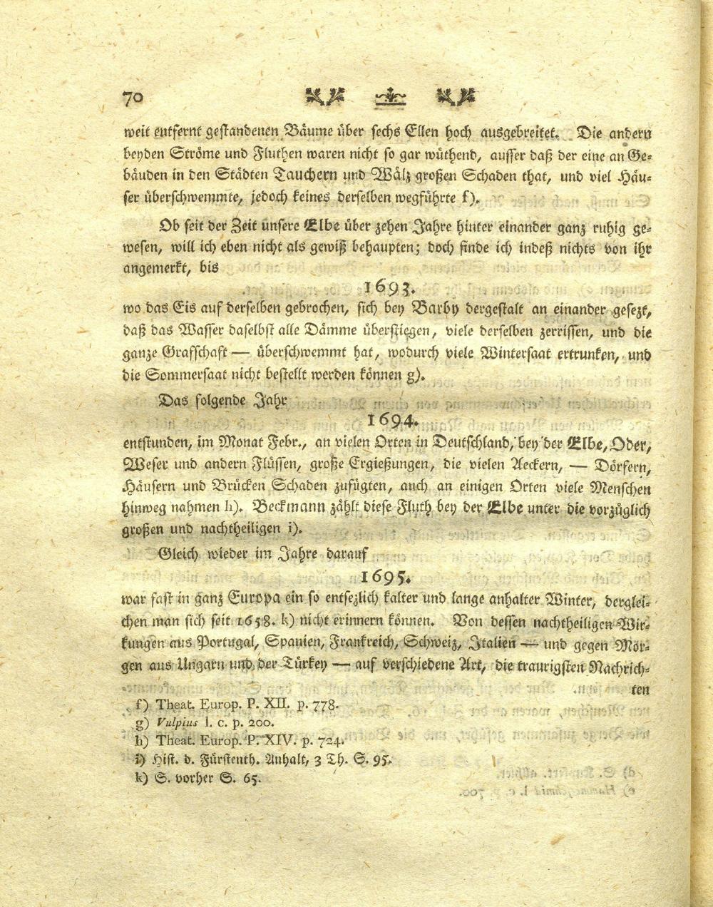 Zweyter Abschnitt: Von einigen großen Wasserfluthen des Elbstroms, un der dahin einfallenden Flüsse, vom sechsten bis zum Endes des zehenden Jahrhunderts