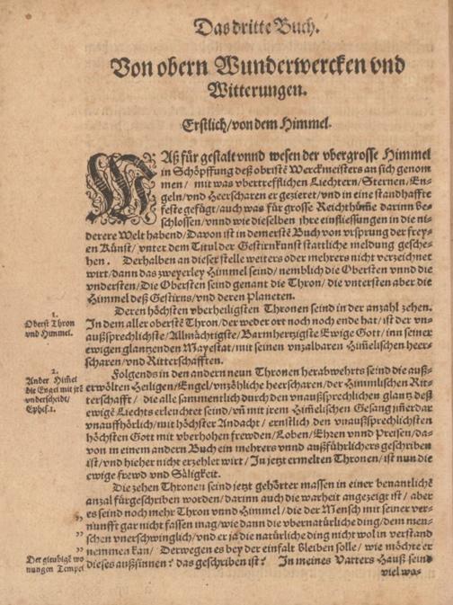 3 (1585) 3 Von Oberen Wunderwercken vnd Witterungen : Darinn mit gruud der warheit dargethan wirt daß alle Witterungen, wie sich die immer erzeigen mögen, nicht auß vergeblichem zufall, sondern auß wolbewußter fürsehung Gottes, auß den. H. himlischee Schatzkästen GOttes, mit gnaden mit vngnaden, wie wirs verdienen, herab zu vns kommen / inn Truck verfertiget von Samuele Siderocrate [i.e. Samuel Eisenmenger] ...