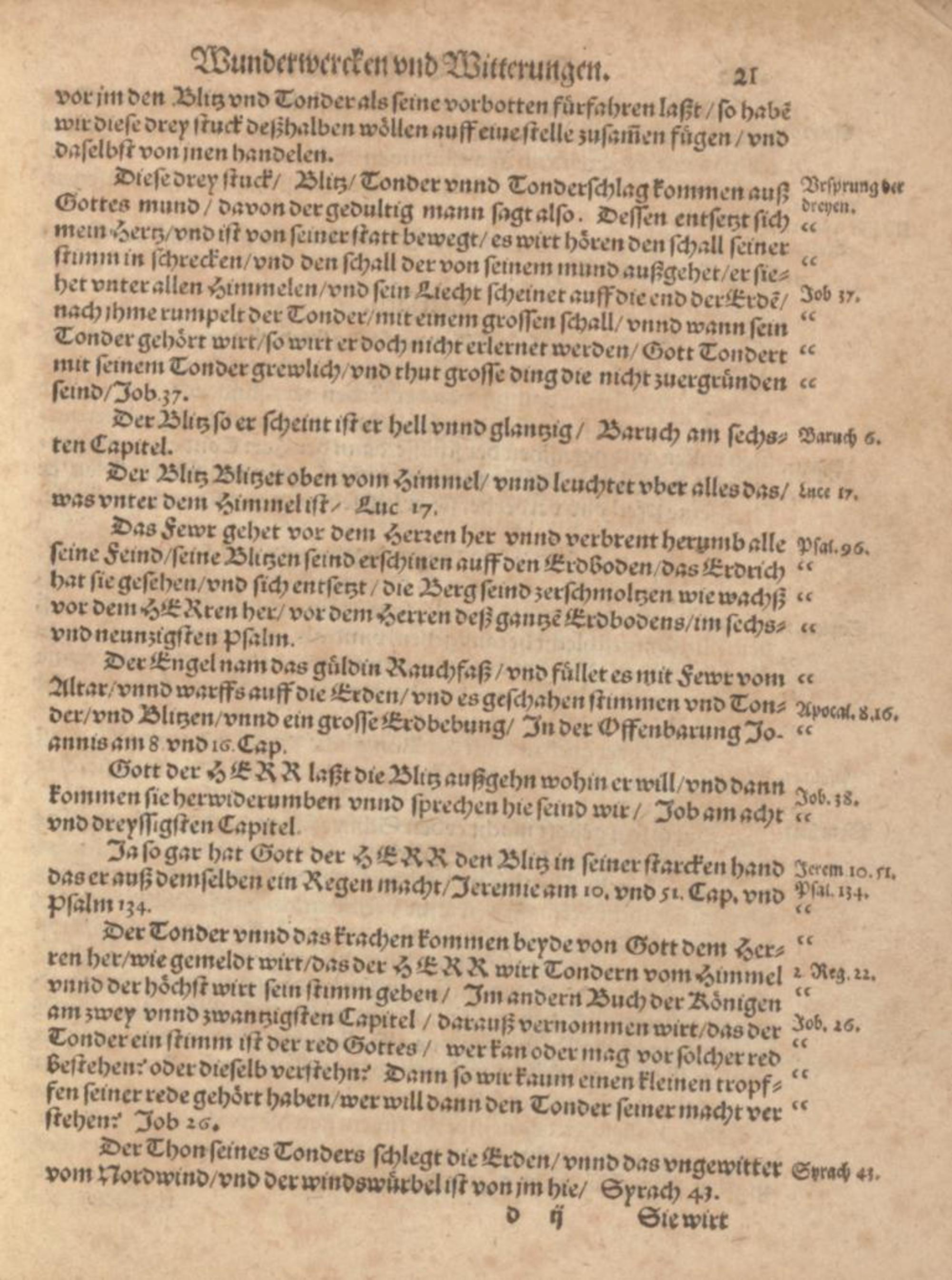 3 (1585) 3 Von Oberen Wunderwercken vnd Witterungen : Darinn mit gruud der warheit dargethan wirt daß alle Witterungen, wie sich die immer erzeigen mögen, nicht auß vergeblichem zufall, sondern auß wolbewußter fürsehung Gottes, auß den. H. himlischee Schatzkästen GOttes, mit gnaden mit vngnaden, wie wirs verdienen, herab zu vns kommen / inn Truck verfertiget von Samuele Siderocrate [i.e. Samuel Eisenmenger] ...