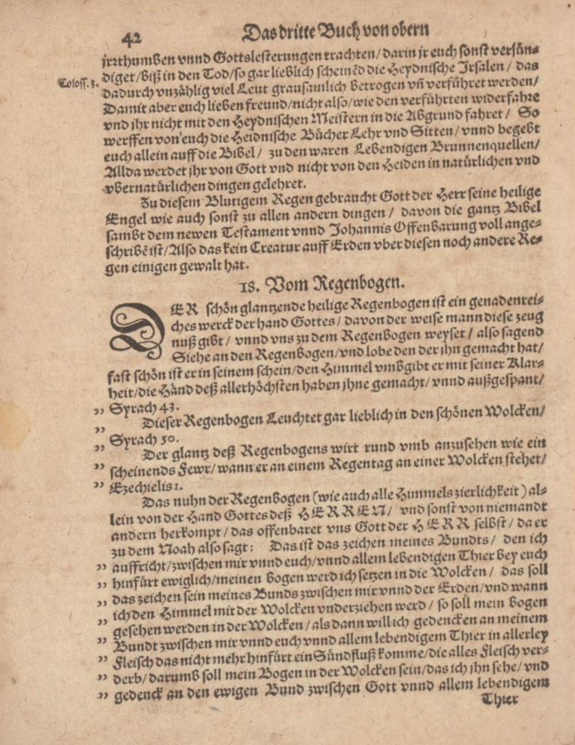 3 (1585) 3 Von Oberen Wunderwercken vnd Witterungen : Darinn mit gruud der warheit dargethan wirt daß alle Witterungen, wie sich die immer erzeigen mögen, nicht auß vergeblichem zufall, sondern auß wolbewußter fürsehung Gottes, auß den. H. himlischee Schatzkästen GOttes, mit gnaden mit vngnaden, wie wirs verdienen, herab zu vns kommen / inn Truck verfertiget von Samuele Siderocrate [i.e. Samuel Eisenmenger] ...